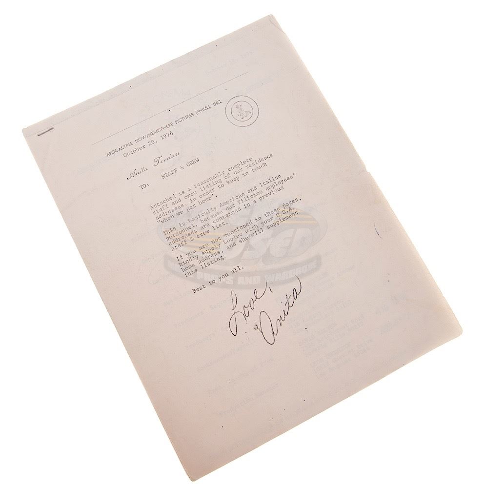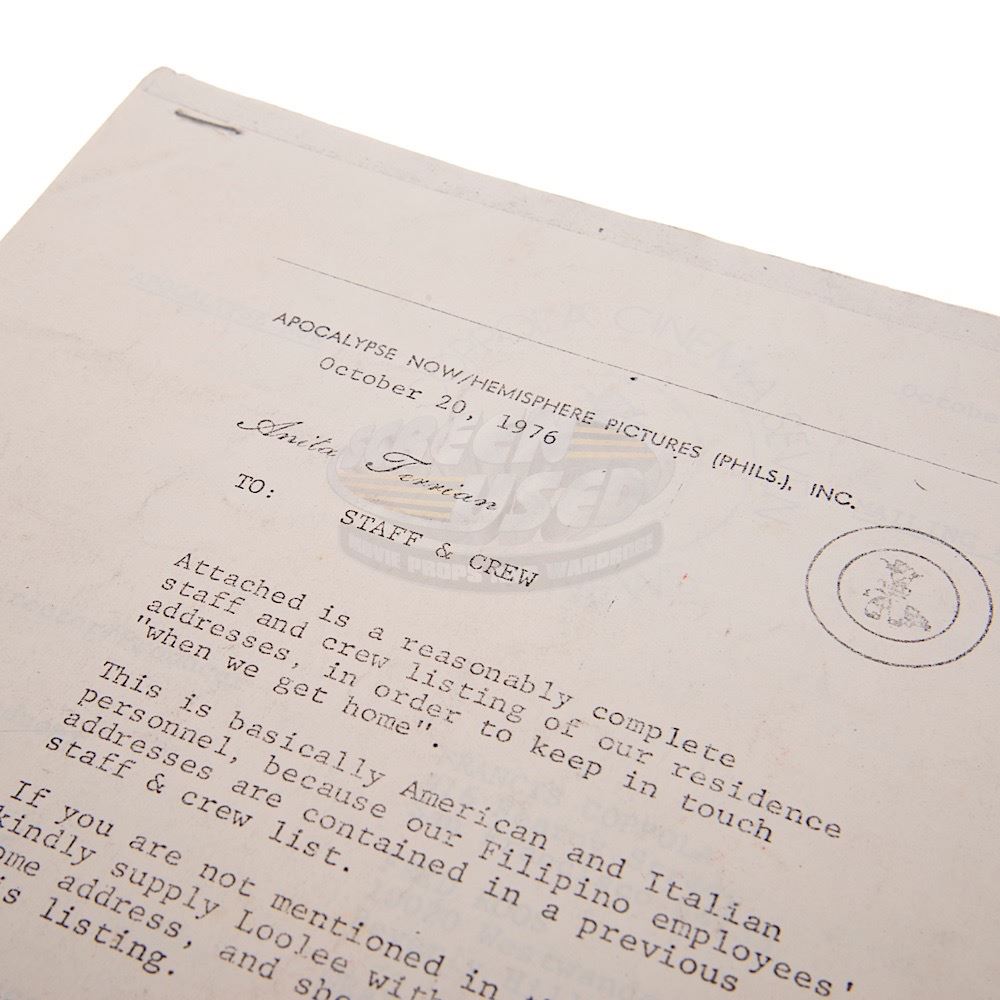 (United Artists, 1979) This is a unit list dated October 20, 1976. The 8 page list has contact information for the entire crew and is held together with one staple in the top left corner. Several pages have handwritten changes. Minor wear from use is present.