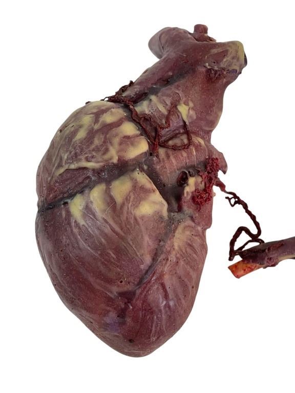 Heart and hand made of foam rubber. Knife is wood with a resin blade.