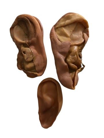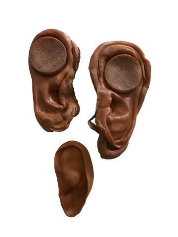 Apocalypto (2006)- Native ear prosthetics. These three meticulously crafted ear prosthetics are made of realistic-painted rubber, designed to replicate the distinctive stretched and adorned earlobes common in ancient Mesoamerican cultures, as depicted in the film. Such detailed makeup was crucial in bringing the film's immersive and visually stunning world to life, portraying signs of status and cultural identity.