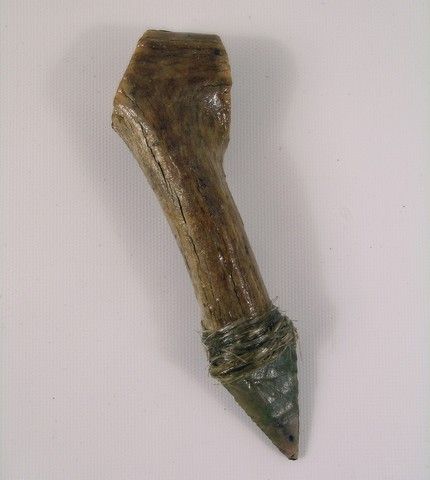 A primitive hand made wood weapon with arrow head from Mel Gibson's "Apocalypto" (2006). (Approx. 7" long).