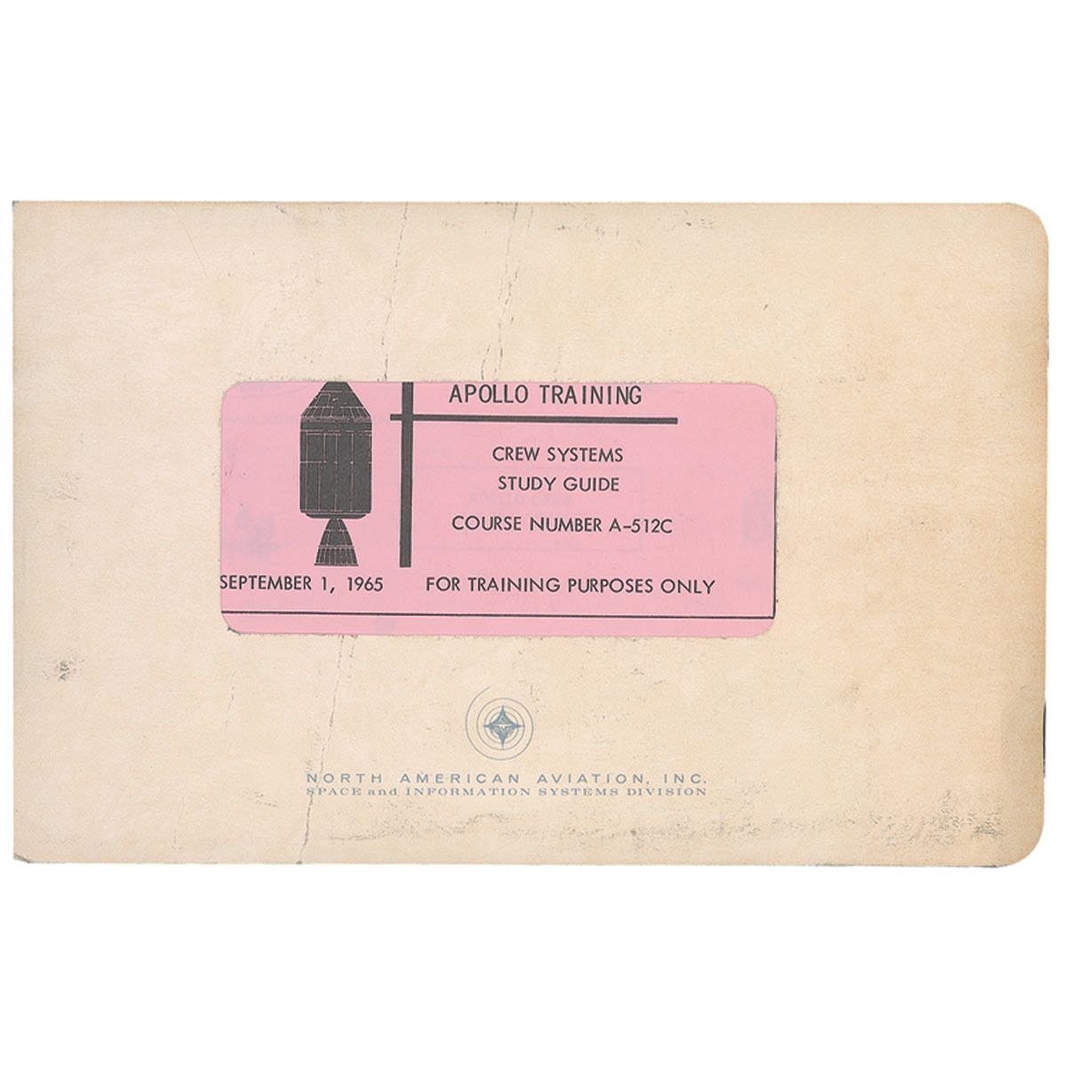 Apollo Training Crew Systems Guide, Course Number A–512C, dated September 1, 1965, 9 x 5.75. Done by North American Aviation, Inc., this guide provides in-depth instructions and training for all aspects of an Apollo mission including space suit assembly, mission experiments, spacecraft lighting and sighting, food, water, hygiene, and survival kit. Signed on the back cover in black ballpoint, “Roger B. Chaffee,” and “Ed White.” Expected handling wear, with scattered creases, toning, and soiling to front and back cover, with none of the flaws detracting from the large signatures, otherwise fine condition. A very interesting and uncommon format, signed by the two astronauts whose deaths were directly tied to this program.