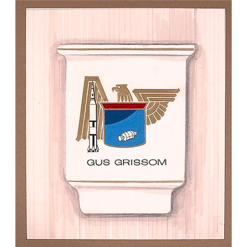 <Our item number 138356><B>Apollo 1, Undated, Original Al Stevens Painting.</B> (10x11") Painted in honor of Gus Grissom, probably in the late 1960s after his death in Apollo 1, this original mixed media painting honors Mission Commander Gus Grissom by picturing the Apollo V, Block I launch vehicle, an Apollo capsule in space around the moon and a stylized Eagle design. Although undated, Stevens is recognized as having done the final design art for the crew patches of Apollo 1, 7, 9 and 10 and was involved in the work done on the patches of Apollo 11, 12 and 17. An important piece of art and of space history. <BR>Estimated Value $750 - 1,000. <BR><BR>Our item number 138356<BR><IMAGES><P ALIGN="CENTER"><IMG SRC="http://www.goldbergcoins.net/liveauction/49jpegs/138356.jpg"> </P></IMAGES>