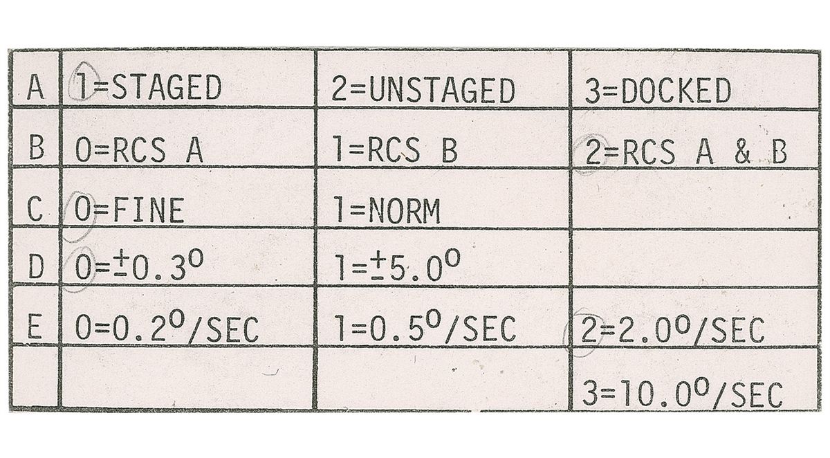 Flown lunar module docking cue card flown to the moon on board Apollo 10. Card measures 3.5 1.5, with two strips of Velcro on the reverse, and provided information on the configurations for the reaction control system to be successfully docked with the command module. Card is signed on the reverse in blue felt tip, “Apollo X, Gene Cernan.” In fine condition.