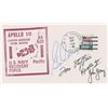 Apollo 10 recovery cover honoring the mission’s naval recovery force, signed in blue ballpoint by Gene Cernan and in black felt tip by Tom Stafford and John Young. In fine condition.