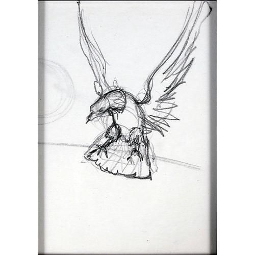 <Our item number 138392><B>Apollo 11, 1969, Al Stevens Original Pen & Ink Crew Patch "Eagle" Drawing.</B> (framed to 6.5x8.5") This original pen and ink drawing was used by Stevens in the conceptualizing of the "Eagle" used in the final crew patch design. This drawing is one of only nine in existence. Each of the nine is different and unique. An important piece of Apollo 11 history. Stevens is credited for having created the final designs for the Apollo 1, 7, 9 and 10 patches and for having worked on the Apollo 11, 12 and 17 patches. All of his work makes a beautiful addition to any collection. <BR>Estimated Value $500 - 750. <BR><BR>Our item number 138392<BR><IMAGES><P ALIGN="CENTER"><IMG SRC="http://www.goldbergcoins.net/liveauction/49jpegs/138392.jpg"> </P></IMAGES>