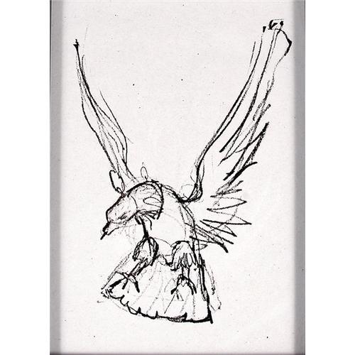 <Our item number 138393><B>Apollo 11, 1969, Al Stevens Original Pen & Ink Crew Patch "Eagle" Drawing.</B> (framed to 6.5x8.5") This original pen and ink drawing was used by Stevens in the conceptualizing of the "Eagle" used in the final crew patch design. This drawing is one of only nine in existence. Each of the nine is different and unique. An important piece of Apollo 11 history. Stevens is credited for having created the final designs for the Apollo 1, 7, 9 and 10 patches and for having worked on the Apollo 11, 12 and 17 patches. All of his work makes a beautiful addition to any collection. <BR>Estimated Value $500 - 750. <BR><BR>Our item number 138393<BR><IMAGES><P ALIGN="CENTER"><IMG SRC="http://www.goldbergcoins.net/liveauction/49jpegs/138393.jpg"> </P></IMAGES>