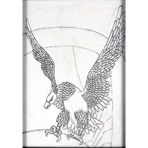 <Our item number 138394><B>Apollo 11, 1969, Al Stevens Original Pen & Ink Crew Patch "Eagle" Drawing.</B> (framed to 6.5x8.5") This original pen and ink drawing was used by Stevens in the conceptualizing of the "Eagle" used in the final crew patch design. This drawing is one of only nine in existence. Each of the nine is different and unique. An important piece of Apollo 11 history. Stevens is credited for having created the final designs for the Apollo 1, 7, 9 and 10 patches and for having worked on the Apollo 11, 12 and 17 patches. All of his work makes a beautiful addition to any collection. <BR>Estimated Value $500 - 750. <BR><BR>Our item number 138394<BR><IMAGES><P ALIGN="CENTER"><IMG SRC="http://www.goldbergcoins.net/liveauction/49jpegs/138394.jpg"> </P></IMAGES>
