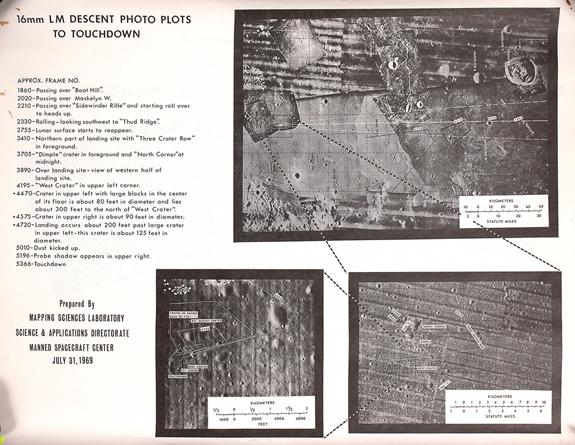 Apollo 11, 1969, "Internal Use" Lunar Surface Photos (22x17") This group of five printed sets of photos was prepared by and for use of the Mapping Sciences Laboratory, Science and Applications Directorate at JSC and not distributed to the public. The photos depict 1) "Apollo 11 Lunar Surface Panoramas Taken from the LM / Before EVA / After EVA", 2) "Apollo 11 Lunar Surface Panoramas Taken from the Surface… / .Looking Northwest / …Looking North / …Looking South", 3) "…Looking East / Panorama of the Large Crater Approximately 200 Feet East of LM and 4) Apollo 11 Lunar Surface Panorama Taken from the LM" and 5) "16mm. LM Descent Photo Plots to Touchdown". A great lot with only minor edge faults.