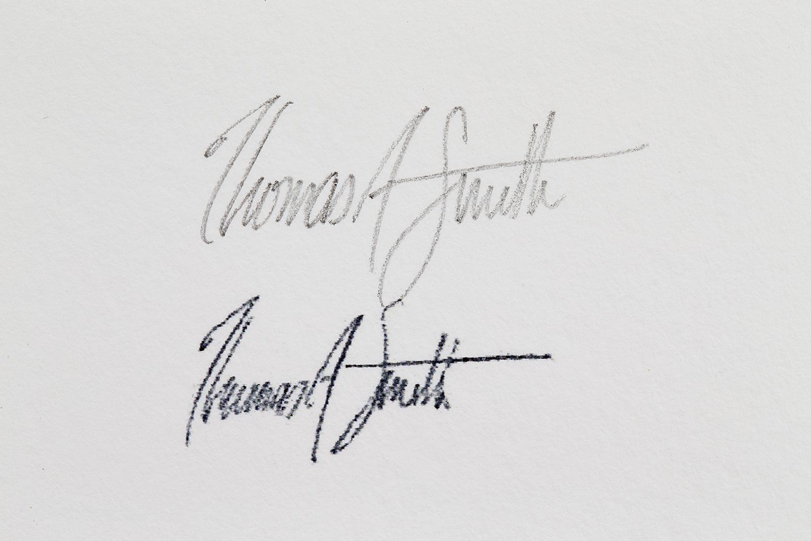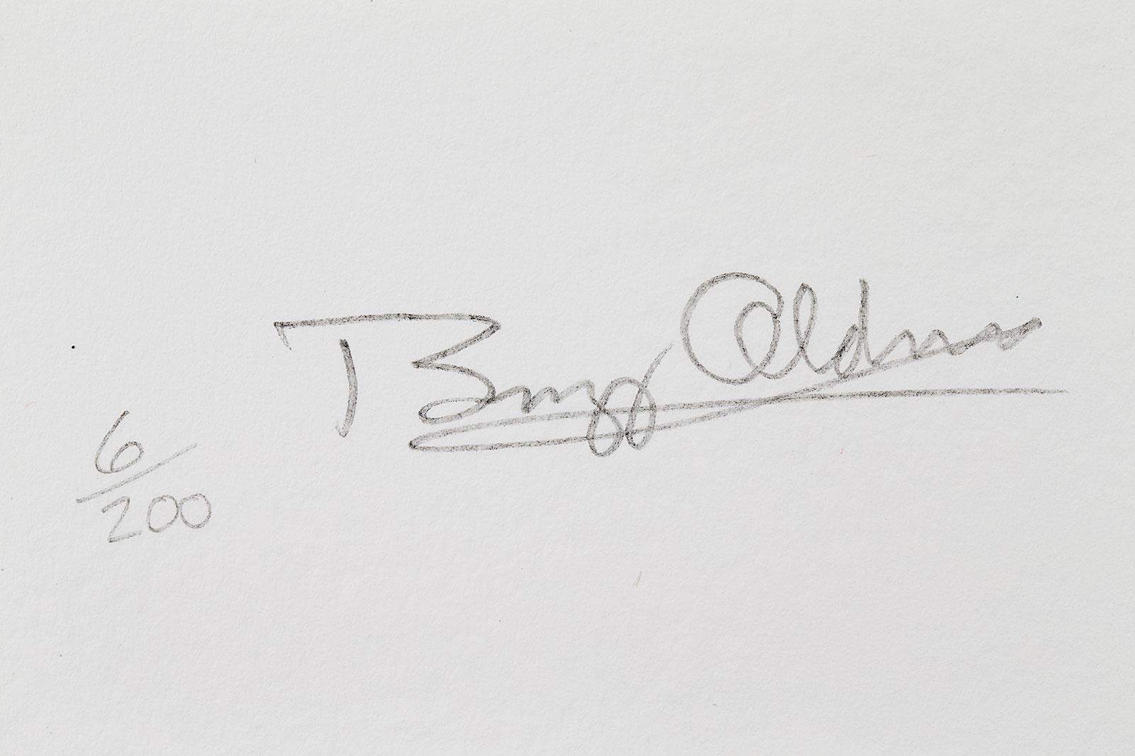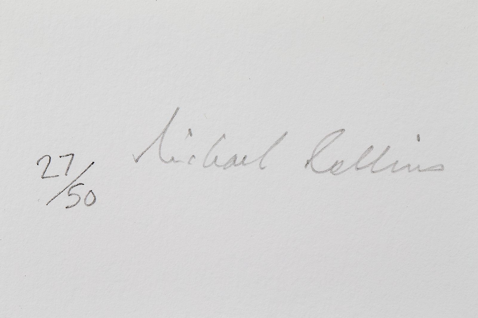 Desirable pairing of oversized limited edition 19 x 29 prints by Thomas Smith, done in the style of Paul Calle's famous Neil Armstrong portrait: one of Buzz Aldrin, showing him wearing the famous 'Snoopy cap' communications carrier, numbered 6/50, signed in the lower border in pencil, "Buzz Aldrin" and "Thomas A. Smith"; and one of Michael Collins in the 'Snoopy cap,' numbered 27/50, neatly signed in the lower border in pencil, "Michael Collins" and "Thomas A. Smith." In overall very fine condition. Accompanied by a certificate of authenticity from Novaspace for the Collins autograph. A perfect duo of companions to the great Calle piece.