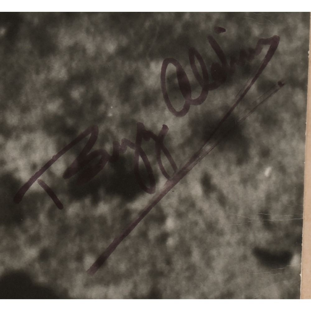 Amazingly rare and historic vintage matte-finish 9.5 x 7.5 photo of astronauts Neil Armstrong and Buzz Aldrin raising the United States flag at the Apollo 11 lunar landing site, signed in felt tip by the entire crew: "Neil Armstrong, Tranquility Base, Moon Landing of Apollo 11, 20 July 1969," "Buzz Aldrin," and "M. Collins." Affixed to an 11 x 11 cardstock mount, with affixed caption below. In very good to fine condition, with some creasing and foxing to the mount, and small scattered stains near Armstrong's signature; the autographs of both Armstrong and Aldrin are clear and bold, while the Collins signature has faded to a somewhat indistinct orange color.