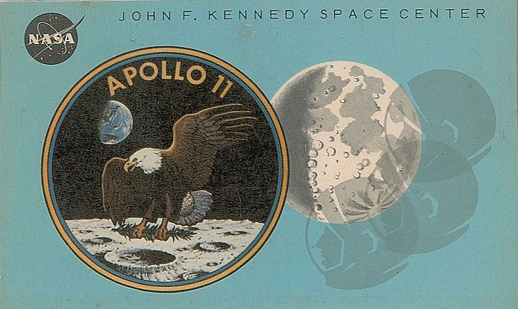 Uncommon Apollo 11 launch pass, number 2722, 5 x 3, featuring images of the mission insignia, moon and three astronaut helmets, with printed text on reverse informing the holder that the pass may be kept as a souvenir after the mission. In fine condition. Examples like this blue version were reserved for more high-profile VIPs, while the more commonly seen gray version was intended for more general use.