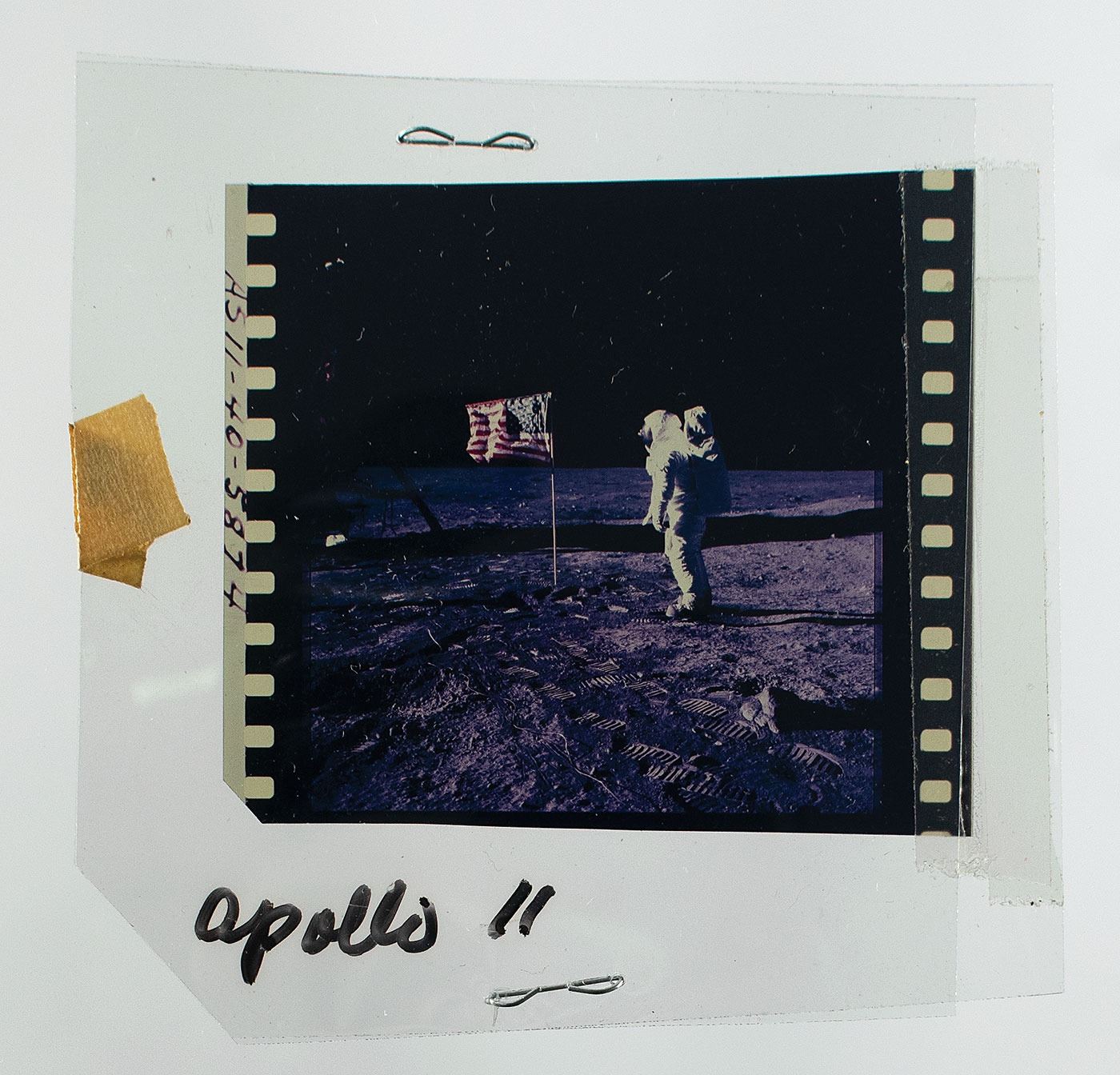 Notable collection of 28 vintage official NASA negatives and transparencies from the Apollo program, ranging in size from 1.5 x 1.25 to 3.75 x 4.75, with three negatives and eleven transparencies exclusive to Apollo 11, and one negative and two transparencies exclusive to Apollo 12, with the balance consisting of artistic renderings, rocket launches, and NASA personnel. Highlights include: color negatives of Buzz Aldrin next to the American flag on the lunar surface, the planet Earth, the lunar surface, and an informal portrait of the Apollo 12 crew; and color transparencies of a full moon, the CM Columbia in flight, and the Apollo 12 crew in their white space suits. In overall fine condition.
