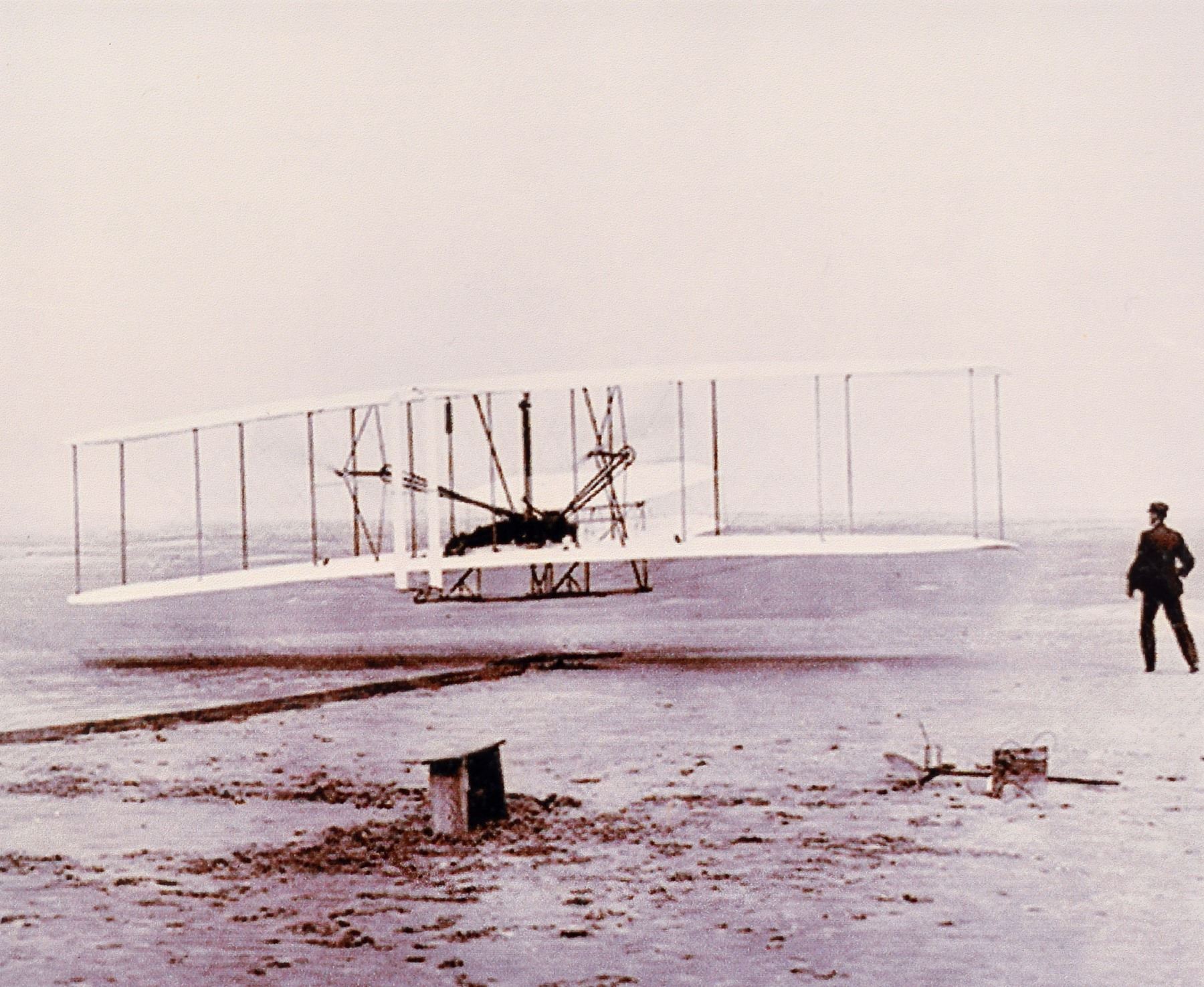 Limited edition display entitled 'One Giant Leap,' containing a small flown swatch of material from the Wright Brothers' 1903 Flyer 1 and a small piece of Kapton foil from the Apollo 11 Command Module Columbia, presented in a 9.75 x 3 x 1.5 Lucite display. In fine condition. Accompanied by the original presentation box with a signed certificate from Historic Space numbered '8.'