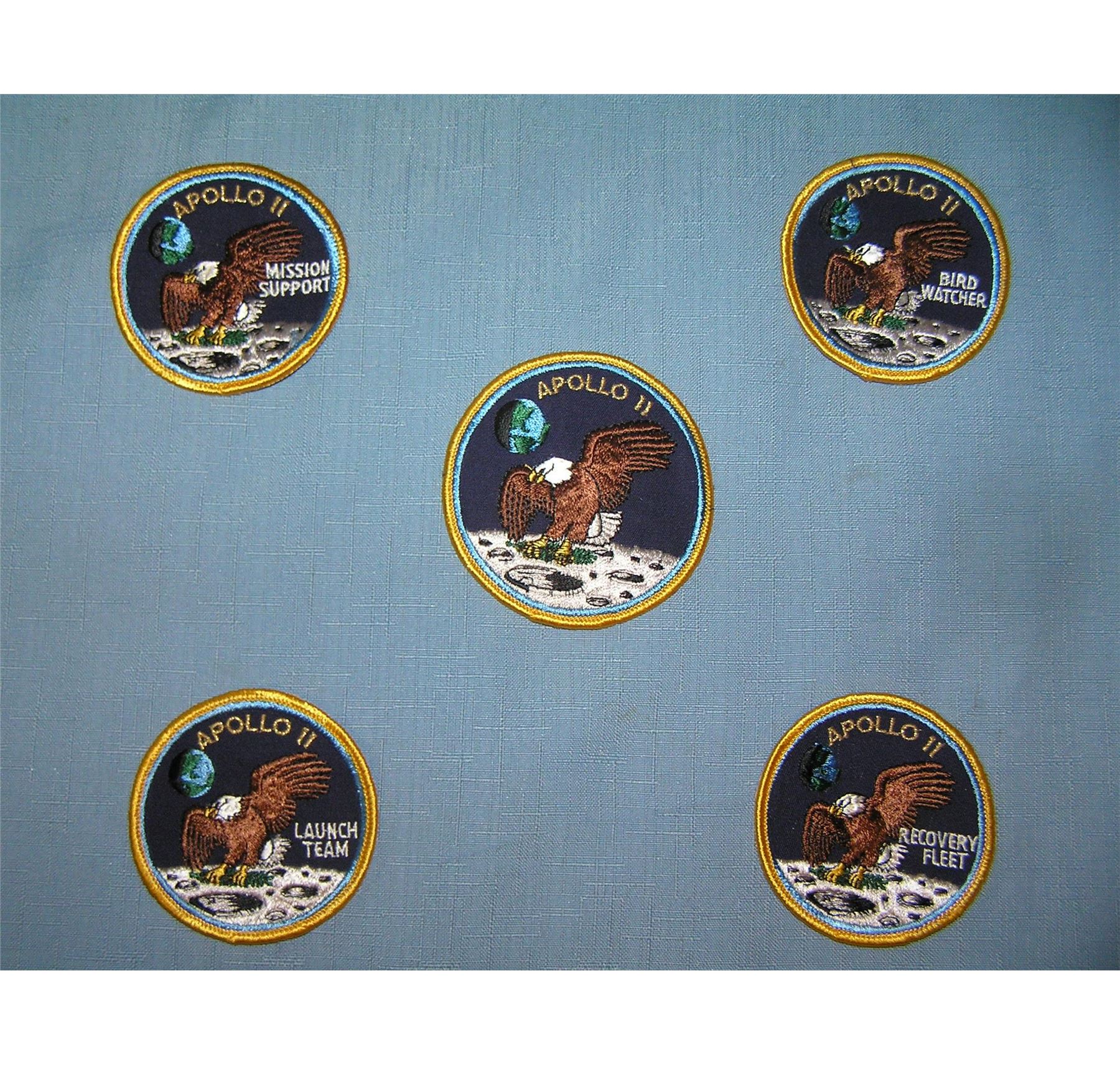 Complete collection of five rare hand embroidered Apollo 11 first man on the moon patches, this mint never used set is complete in original bag, scarce est. value $65.00-$70.00