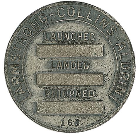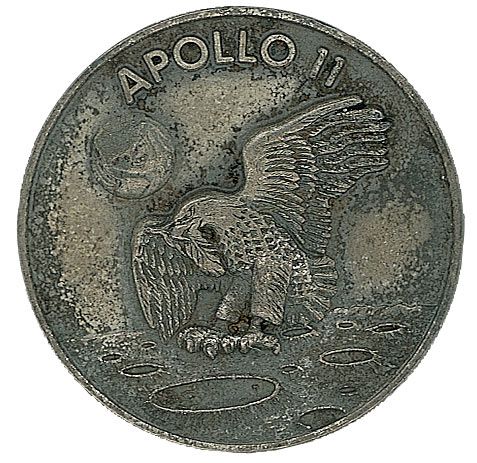 Historic and rare unflown Apollo 11 Robbins Medal, approximately 1-inch diameter, with a raised design on the face of the Apollo 11 mission insignia. The reverse of the sterling silver medal is unengraved, except for the serial number “164.” Normal condition.