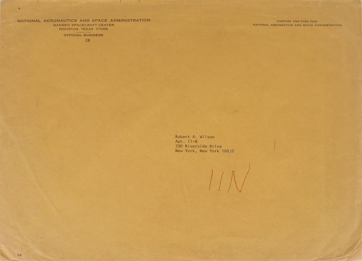 Official color 10 x 8 NASA lithograph of the Apollo 11 crew posing in their white space suits against a lunar background, signed and inscribed in black felt tip, “To Robert Wilson, Best Wishes, Neil Armstrong,” “Michael Collins,” and “Buzz Aldrin.” In fine condition, with some mild creasing near corners. Accompanied by the original NASA mailing envelope.