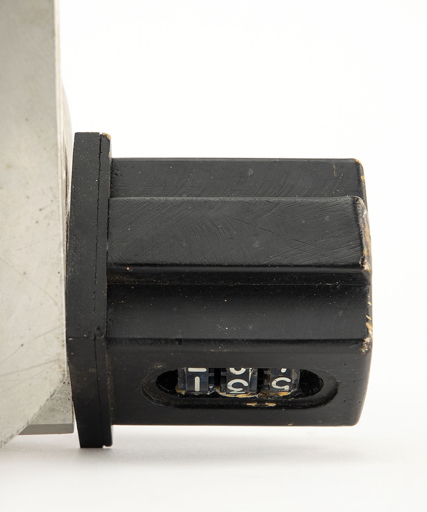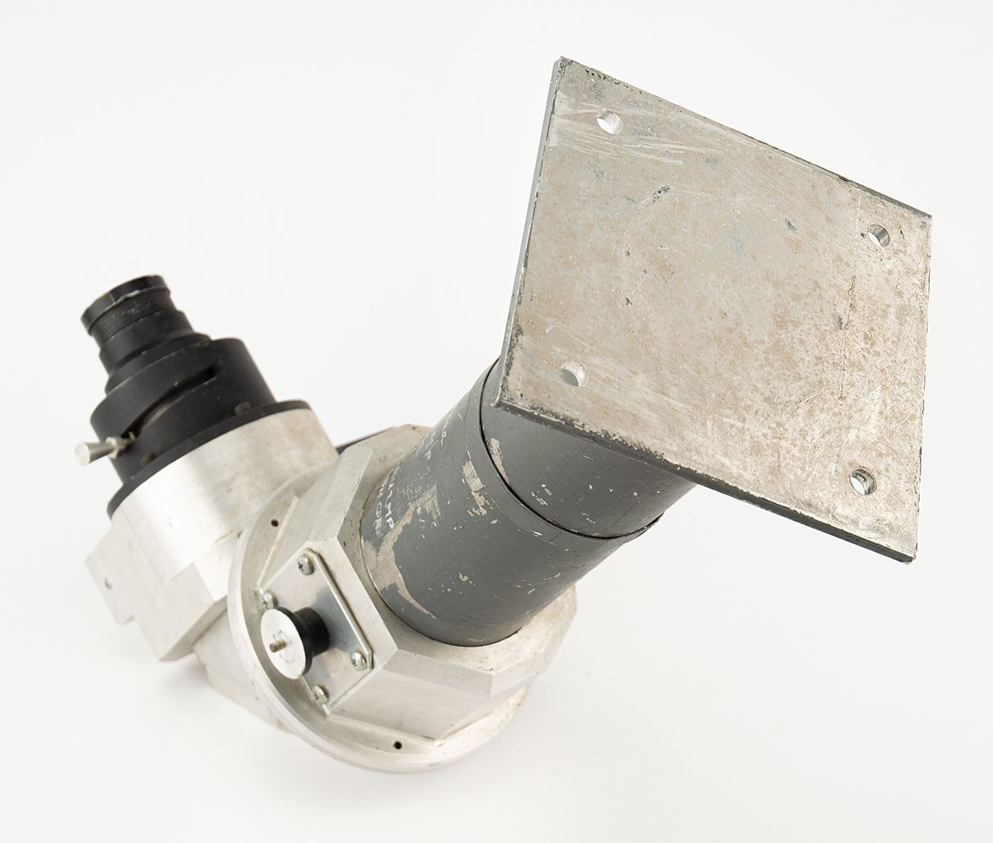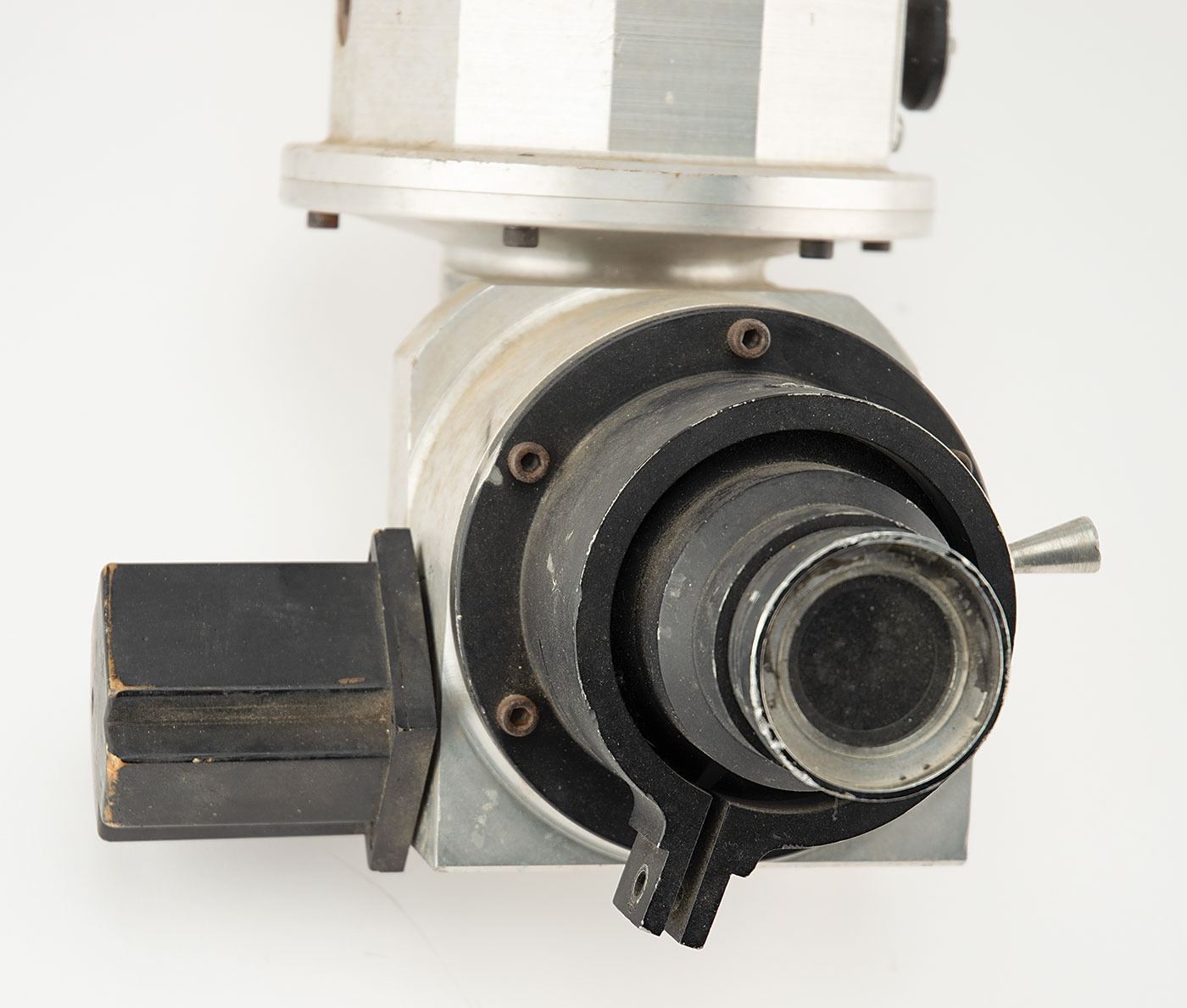 Outstanding screen-used Lunar Module Alignment Optical Telescope (AOT) prop from the Oscar-winning 1995 film Apollo 13, standing approximately 18˝ in height and weighing 17 pounds. The periscope-type device is made of aluminum, brass, resin, and steel, and is signed on the gray base pole in silver ink, "Fred Haise, Apollo 13 LMP, Aquarius, LM7, Apollo 11 BU LMP, Apollo 16 BU CDR." In fine condition. The AOT was a periscope-type optical device that protruded through the top of the Lunar Module. Astronauts used the AOT to make direct visual sightings and record precise angular measurements of pairs of celestial objects. This information was transferred to the Module's guidance computer, which determined the spacecraft's attitude and permitted the alignment of its inertial guidance system. Accompanied by images of the prop as seen in the film, as well as a signed letter of authenticity from spaceflight historian and author Lora Johnson, which reads, in part: "This screen-used item was part of the lunar module interior set during production of the Tom Hanks film Apollo 13. When the set later was refurbished for use in the HBO mini-series From the Earth to the Moon, many original components that had been broken or worn were removed and replaced. This heavily built…(AOT) was replaced by one of lighter construction…After filming wrapped, it was given to [Johnson] by Go Flight, Inc., and the FTETTM art department as a thank you for her assistance as design consultant."