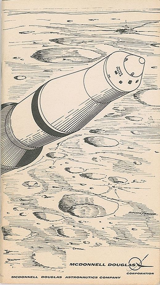 Uncommon McDonnell Douglas launch information guide for the Saturn V SA-508 rocket, the launch vehicle that would send the crew of Apollo 13 to the moon on April 11, 1970, forty pages, 3.75 x 6.75, prepared by A41 Test Planning & Evaluation. The guide offers information on Launch Windows and Landing Site, Launch Phase, Translunar Injection, Translunar Coast & Lunar Impact Maneuvers, Lunar Arrival & Lunar Impact, and Spacecraft Mission. Additionally it covers vehicle mass comparisons for previous Saturn rockets and features an array of diagrams, schematics, and tracking charts relative to the mission. In fine condition.