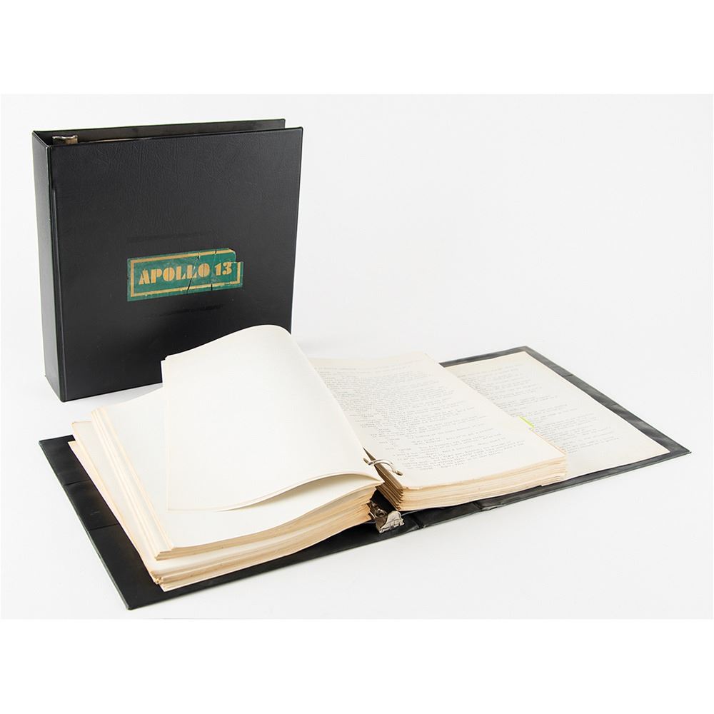 NASA Manned Spacecraft Center publication entitled "Apollo 13 Mission Commentary," 8 x 10.5, 635 pages, containing the official transcript of communications between Mission Control and the Apollo 13 astronauts throughout the duration of the near-catastrophic mission. These transcript packets were handed out to the press covering the historic event, and are now contained within two binders. The highlight of the transcript comes on page 169, in the crew's famous lines: "Okay, Houston. Hey, we've got a problem here‰Û_Houston, we've had a problem." The remainder chronicles their successful attempts to improvise a solution and use the LM as a 'lifeboat' to return home safely to Earth. A hand-annotated "Apollo 13 News Room" sheet is included. In very good to fine condition, with some scattered staining, toning, edge tears to one page, and heavy wear and edge splitting to the black binders.