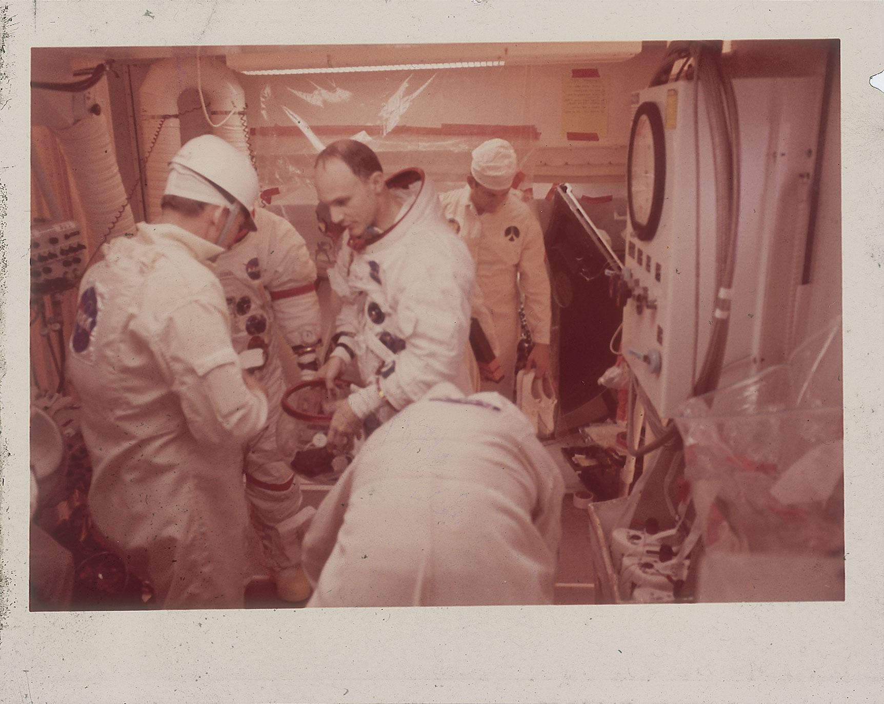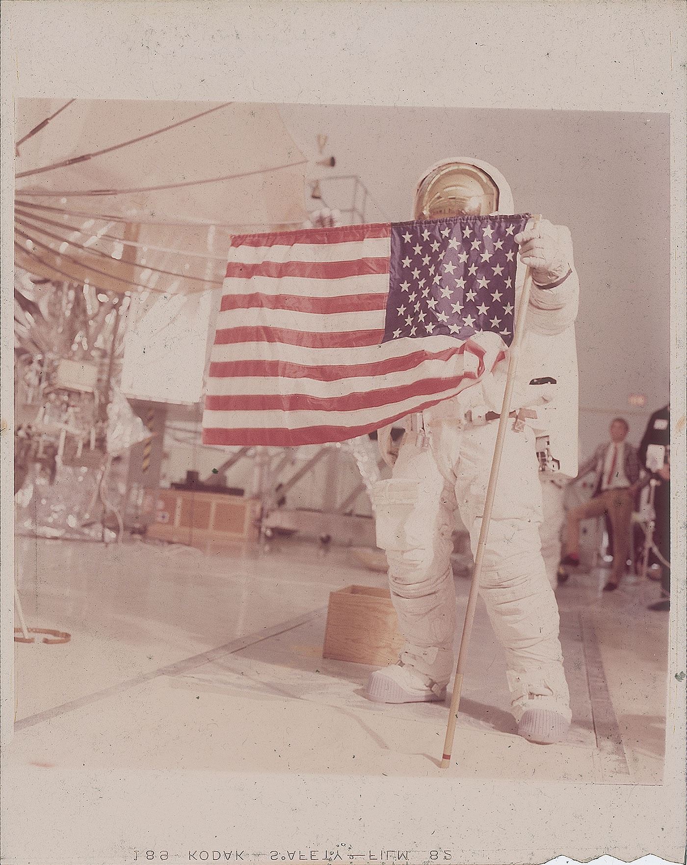 Collection of 91 vintage color 4 x 5 positive transparencies, almost all associated with the Apollo 13 mission, documenting various aspects of training, take off, recovery, and celebration. Most are annotated in type or felt tip with official NASA numbers (e.g. 108-KSC-70PC-25-A-13 and 70HC-462). Particularly notable images include the Apollo 13 insignia, the Saturn V on the launchpad, shots of the moon and Earth taken during the voyage, the Apollo 13 crew with President Richard Nixon, the Apollo 13 CM Odyssey floating in the South Pacific after splashdown, and the recovery by the USS Iwo Jima. In overall fine condition. Consignor notes that this collection was deaccessioned from the American Space Museum.