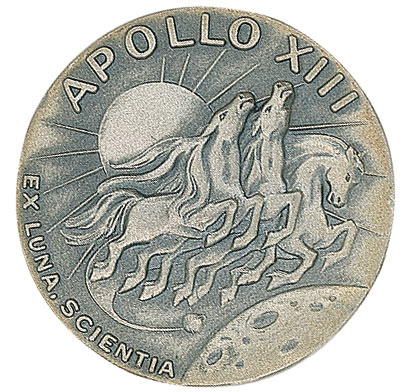 Flight-flown Apollo 13 Robbins Medal, approximately 1.25 diameter, with a raised design on the face of the Apollo 13 mission insignia. The reverse of the sterling silver medal is engraved with the full names of astronauts Jim Lovell, Fred Haise, and Jack Swigert, along with spacecraft names Aquarius and Odyssey, the April 11, 1970, launch date, and April 17, 1970, return date. This medal is serial numbered “277.” Normal condition. This item originated from the collection of Buzz Aldrin and was first sold in 1990 by Superior Galleries.