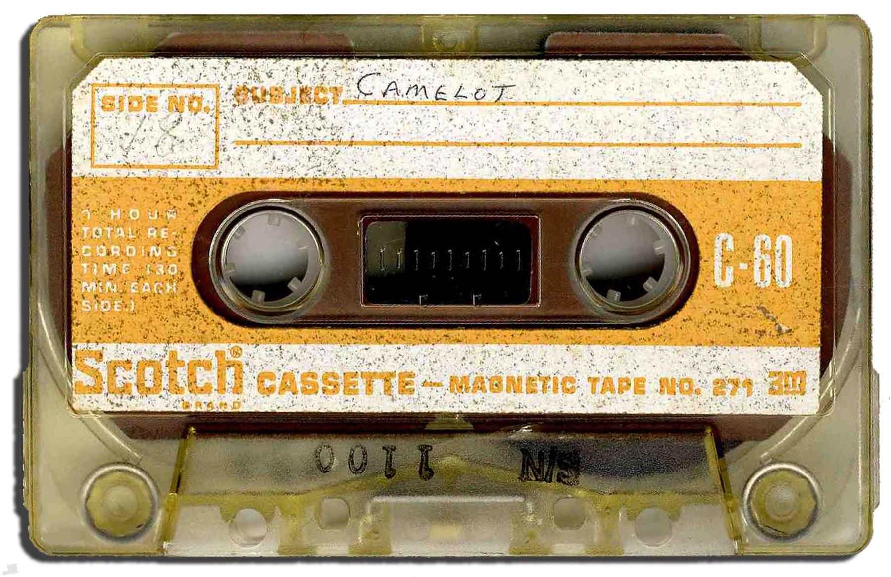 Cassette tape personally dubbed by astronaut Edgar Mitchell and flown aboard Apollo 14 in Mitchell's PPK (personal preference kit). Accompanied by COA signed by Mitchell who writes, ''…the accompanying audio cassette bearing music from the stage play 'Camelot' was…carried into lunar orbit aboard the spacecraft Kittyhawk during Apollo 14…[it] served the dual purpose of providing entertainment…plus a back up recording device…in the event of equipment failure…'' Cassette tape measures 4'' x 2.5''; COA 8.5'' x 11''. Fine condition.