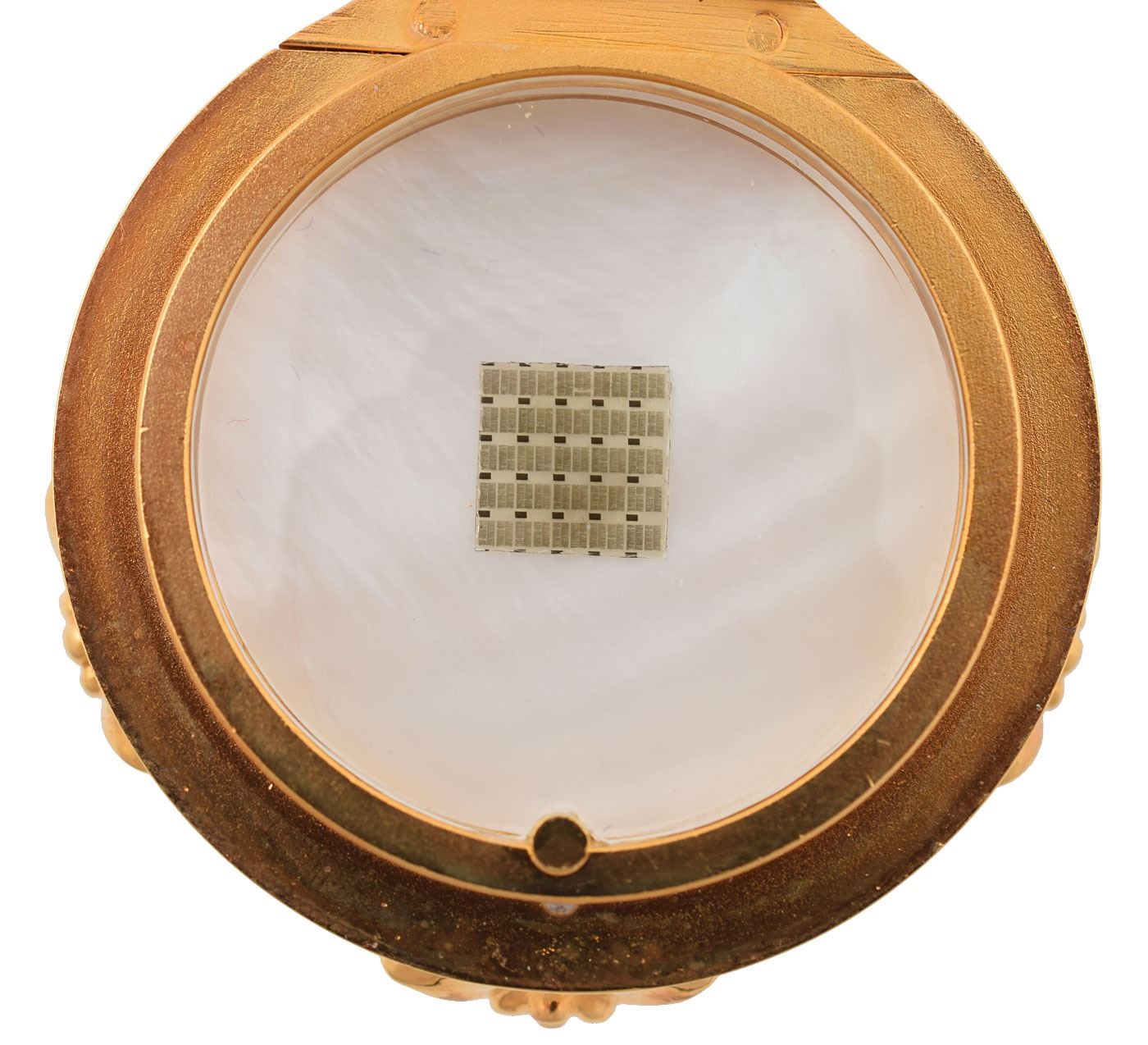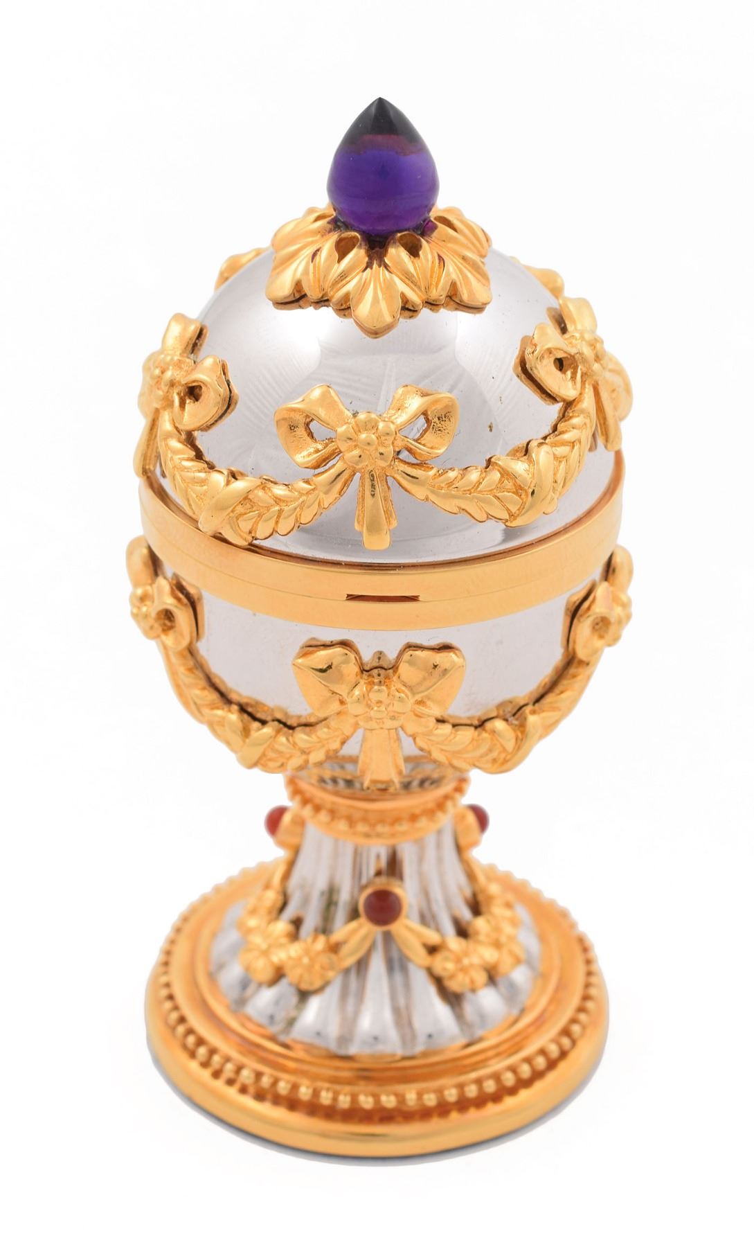 One of 32 dual-certified Lunar Bible 50-page text fragments, carried around the moon on Apollo 13 and brought to the lunar surface on Apollo 14, presented in a modern Faberge egg. The iconic ‘Lunar Bible’ represents the first Bible, the first complete scripture, and the first true book ever carried by man to another celestial world. Printed as a ‘microform’ tablet—the only format possible for flight to the lunar surface—a complete Lunar Bible contains all 1,245 pages of the King James Version. Initially, 512 of these microform Bibles were created and all flown on Apollo 13; some of these were distributed to dignitaries and notable persons following the successful return from the near-disastrous mission. A total of 300 of the Apollo 13–flown Bibles were then given to Edgar Mitchell to carry on Apollo 14; of these, 200 stayed in orbit in the Command Module, and he brought 100 to the surface in the Lunar Module.