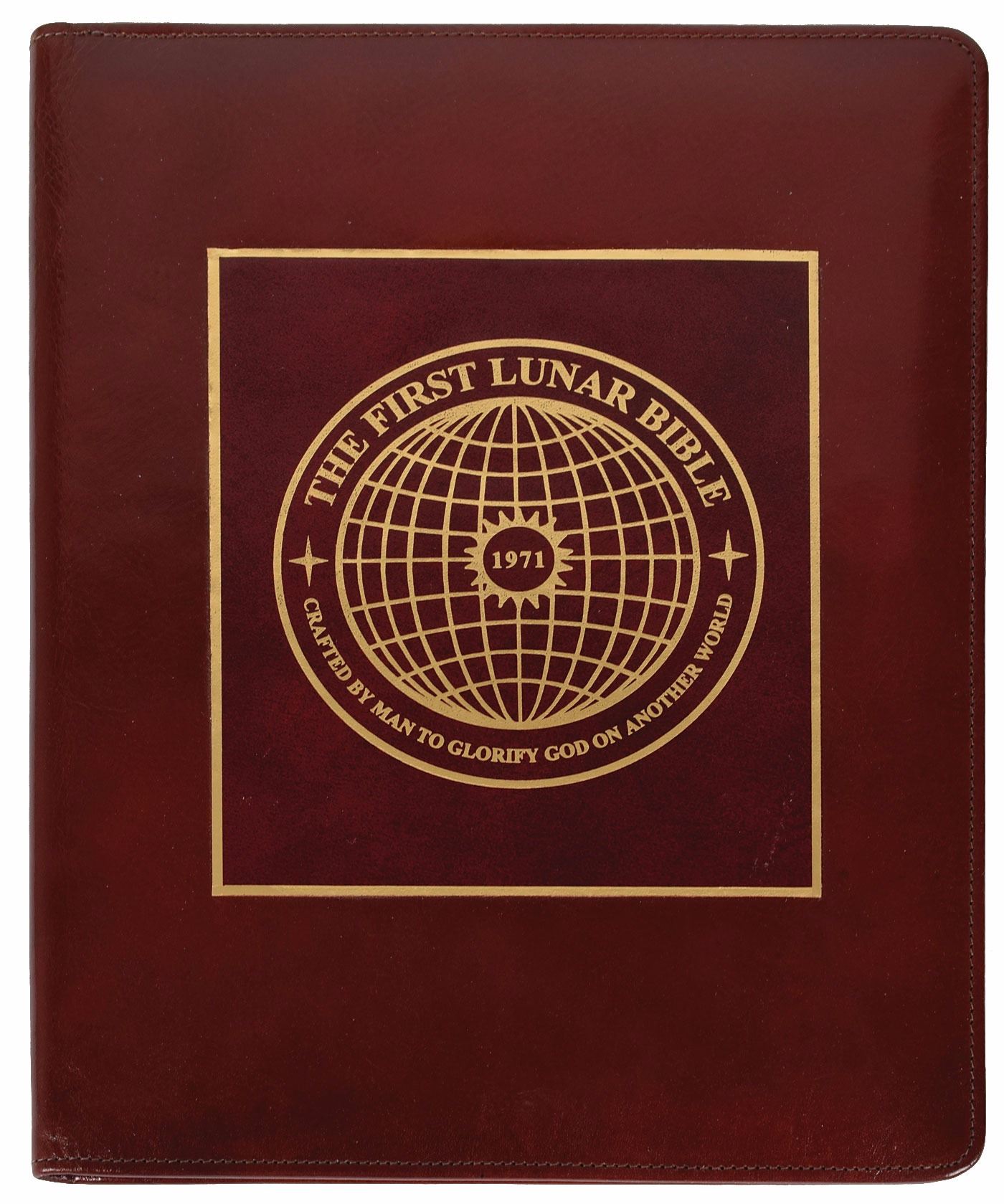 Accompanied by a certificate of authenticity signed by Mitchell and Stout, and a photographic info sheet, both of which are housed within a hand-stained Italian leather presentation portfolio. Also includes the original deluxe velvet Faberge presentation box. This lot is of profound significance not only to the space community as a twice-flown and once-landed lunar artifact, but also to the religious, rare book, and Masonic communities—Mitchell was a freemason. Several of the 32 copies are already permanently off the market; the State of Georgia acquired an example for their rare-book holdings, and two more reside in the personal collections of Mitchell's family and Stout. Another 50-page example is on indefinite loan to the Atlanta Masonic Library and Museum, and more of these precious few Faberge examples may become permanently institutionalized and unavailable to collectors in coming years. You may read ‘The Story of the First Lunar Bible’ at www.LunarBible.com.