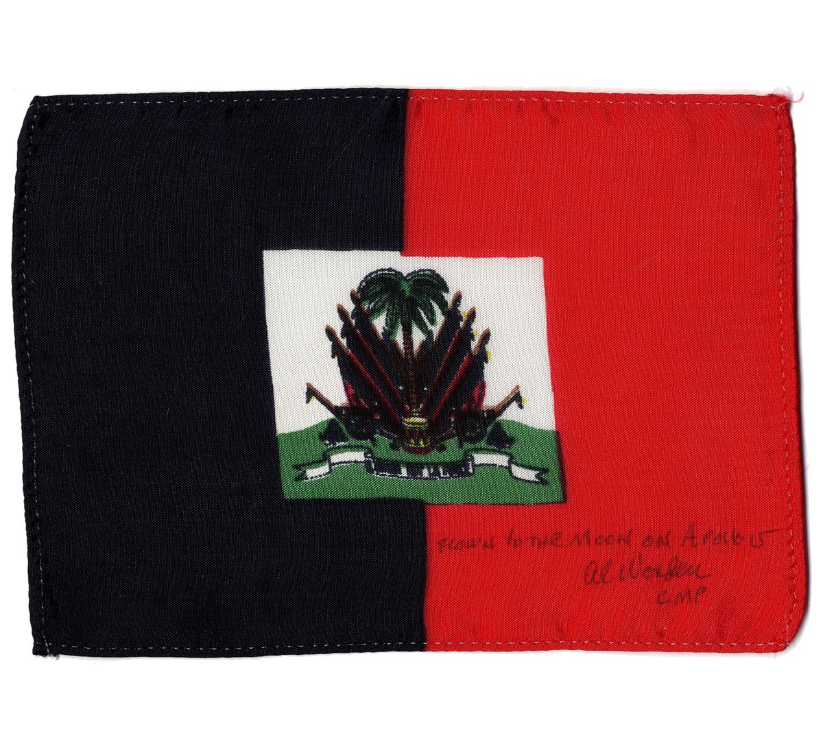Apollo 15 Flown 6'' x 4'' Haiti Flag -- Signed & Inscribed ''Flown to the Moon on Apollo 15'' by NASA Astronaut Al Worden -- Fine -- Also With COA by Worden