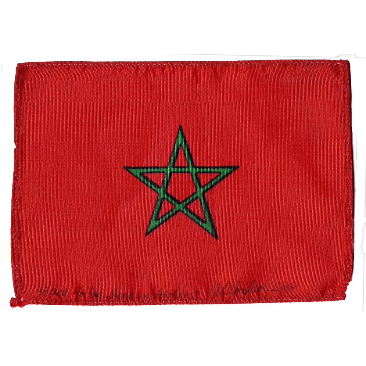 Apollo 15 Flown 6'' x 4'' Morocco Flag -- Signed & Inscribed ''Flown to the Moon on Apollo 15'' by NASA Astronaut Al Worden -- Near Fine -- Also With COA by Worden