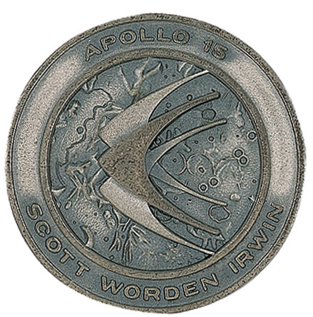 Unflown Apollo 15 Robbins Medal, approximately 1.5 diameter, with a raised design on the face of the Apollo 15 mission insignia. The reverse of the sterling silver medal is engraved “Man’s Flight Through Life Is Sustained By The Power Of His Knowledge” along with the July 26, 1971, launch date, July 30, 1971, moon landing date, and August 7, 1971, return date. This medal is serial numbered “167” along the rim and is not flight flown. (Only 127 were reported to have been flown on the mission). Normal condition.