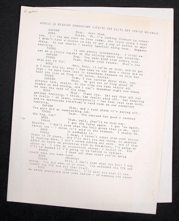 Apollo 16, 1972, Two Page NASA Uncensured Open Mike T