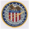 Embroidered Apollo 16 mission insignia patch, measuring 4? in diameter, with accompanying 10 x 12 printed presentation certificate bearing facsimile signatures of the crew. The certificate reads: "This crew emblem Is Presented as a small token of the crew's appreciation for your fine support of the Apollo 16 mission." In fine condition, with overall staining and one edge tear to the accompanying presentation sheet. Accompanied by the original envelope, addressed to "T. Hait."