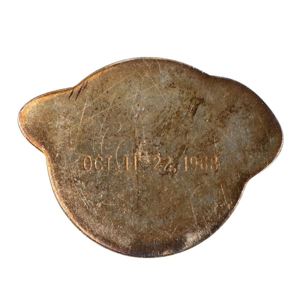 Initially designed as a special keepsake for lunar module pilot Walt Cunningham to take aboard the Apollo 7, the Robbins medallion soon popularized amongst NASA astronauts, becoming a well-known carryon for all successive missions. A desirable piece representing the first manned Apollo mission-the one that started the Robbins tradition.