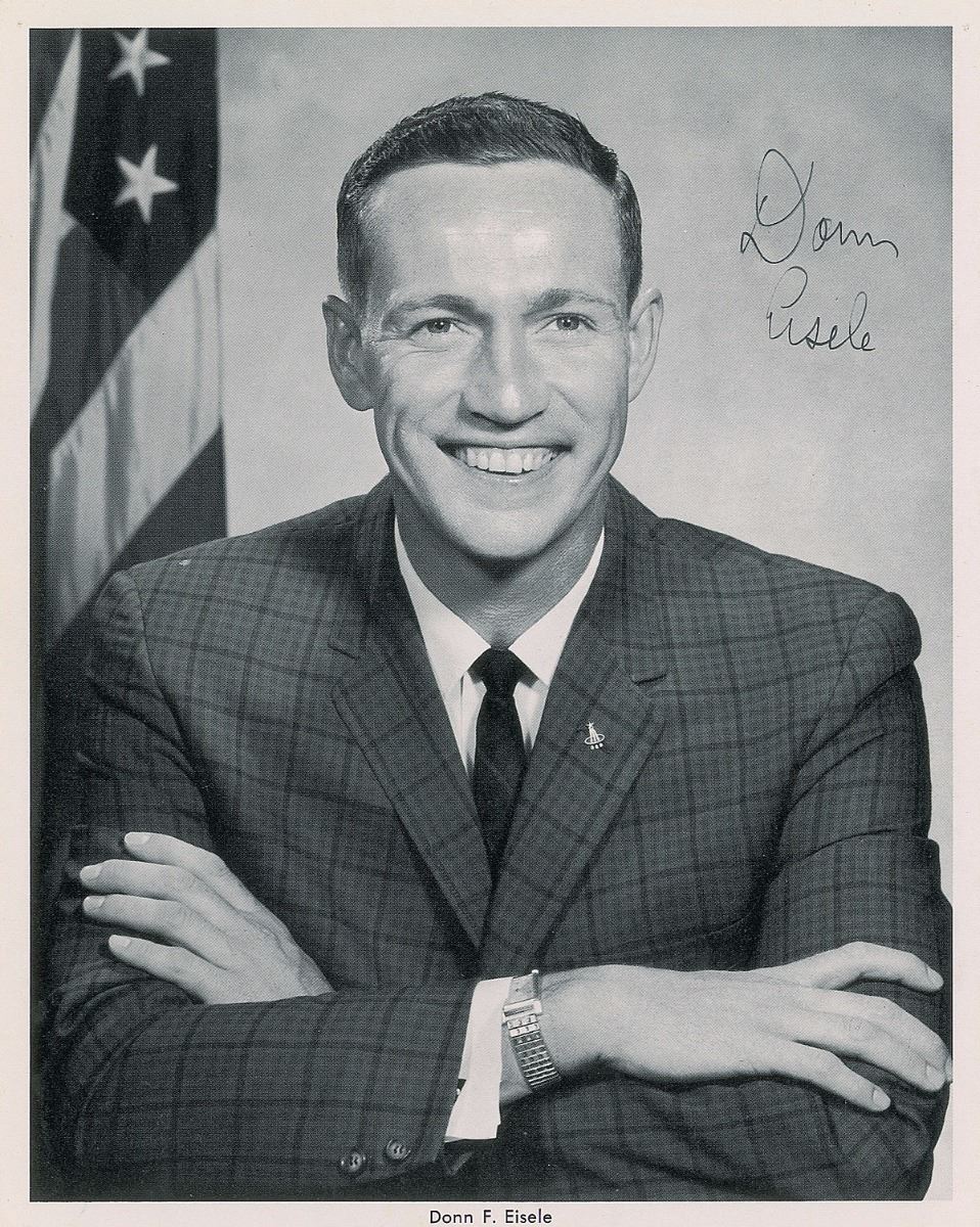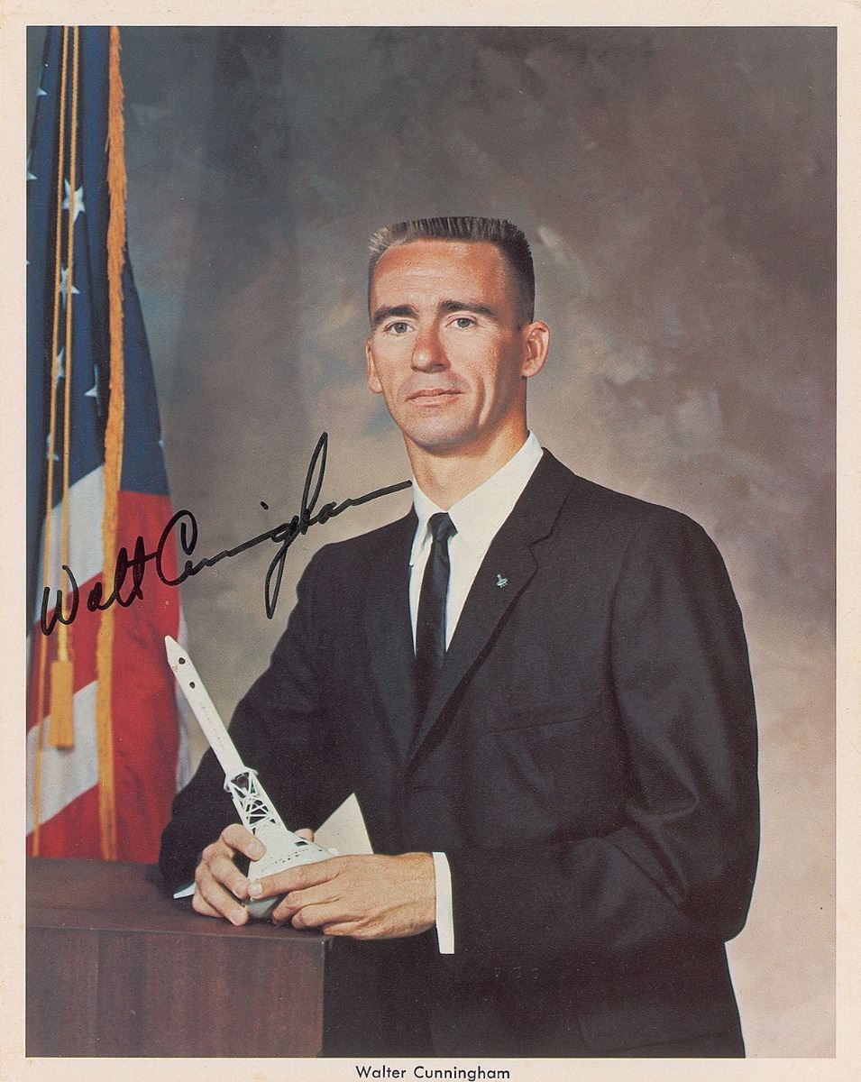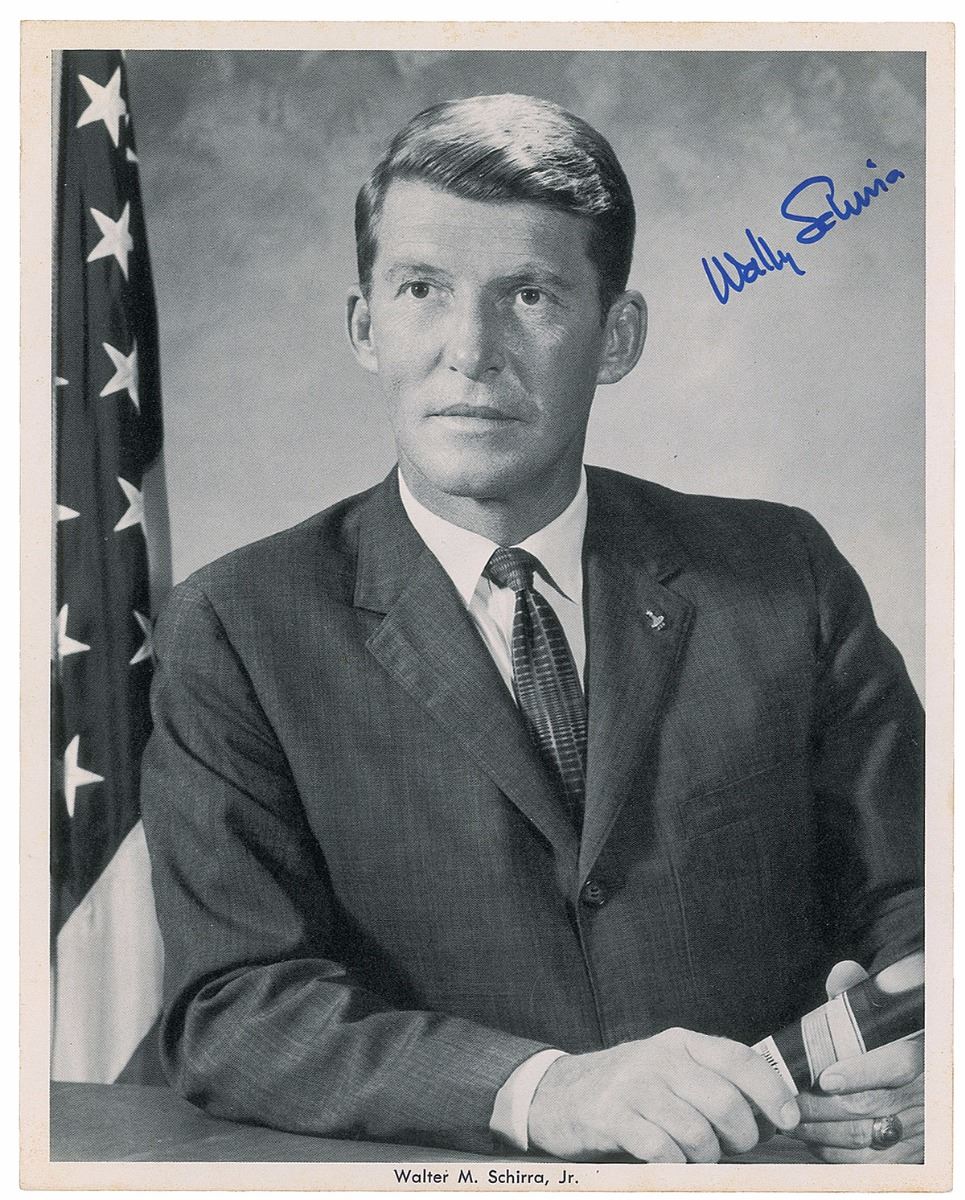 Handsome set of three official 8 x 10 NASA lithograph portraits of the crew members of Apollo 7, signed in ink and felt tip by Donn Eisele, Wally Schirra, and Walt Cunningham. In overall fine condition, with trivial foxing to borders and unobtrusive tack holes to top corners of the Eisele lithograph. The Leon Ford Collection.