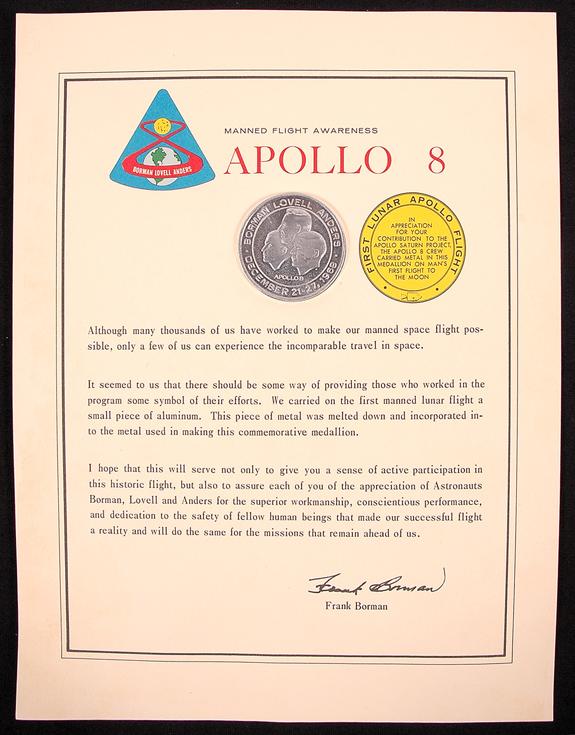 Apollo 8, 1968, FLOWN Manned Flight Awareness Medallion