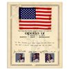 American flag flown in space on the Apollo 9 mission, with a NASA certificate signed by all three crew members: ''James A. McDivitt'', ''Dave Scott'' and ''Rusty Schweickart''. Certificate to which the flag is affixed has small color photos of the crew in their spacesuits and bears the caption: ''This flag was carried in space during the flight of Apollo 9 / March 3 - 13, 1969''. An inscription by Dave Scott reads, ''To Bill Grunert with best wishes and many thanks for your help in showing what Apollo IX was all about''. Flag measures 6'' x 4''. Certificate measures 10.25'' x 12''. Show through of adhesive to corners of flag and light toning to certificate, else near fine.