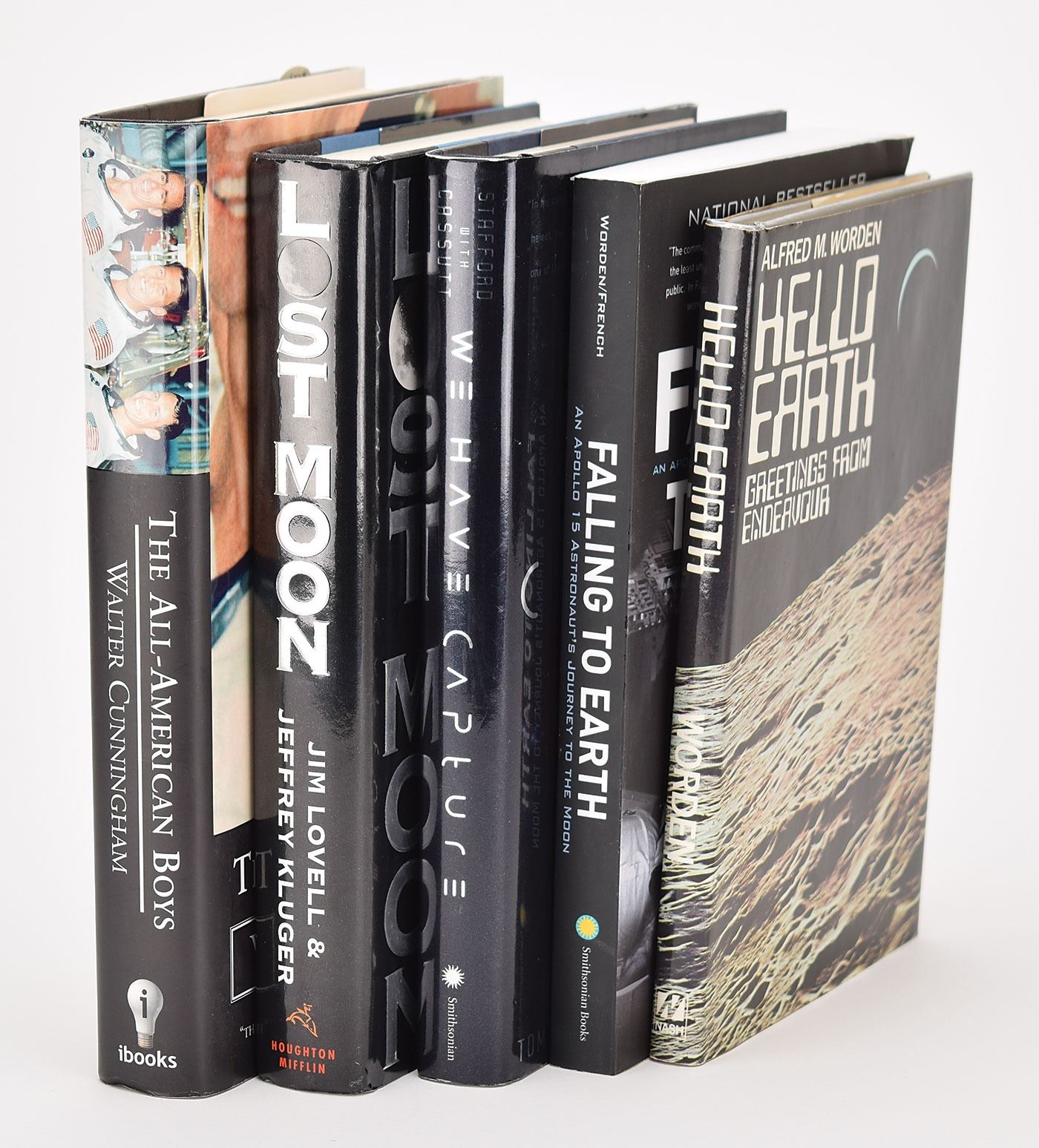 Five books signed in ink or felt tip by an Apollo astronaut: Hello Earth and Falling to Earth, both signed by Al Worden; Lost Moon, signed on a bookplate affixed to the half-title page by James Lovell; We Have Capture, signed by Tom Stafford; and The All-American Boys, signed by Walt Cunningham. In overall fine condition.