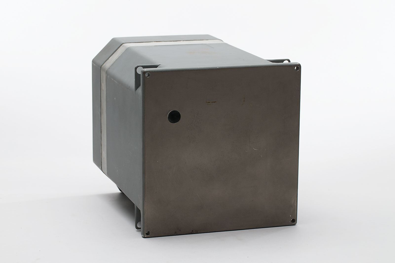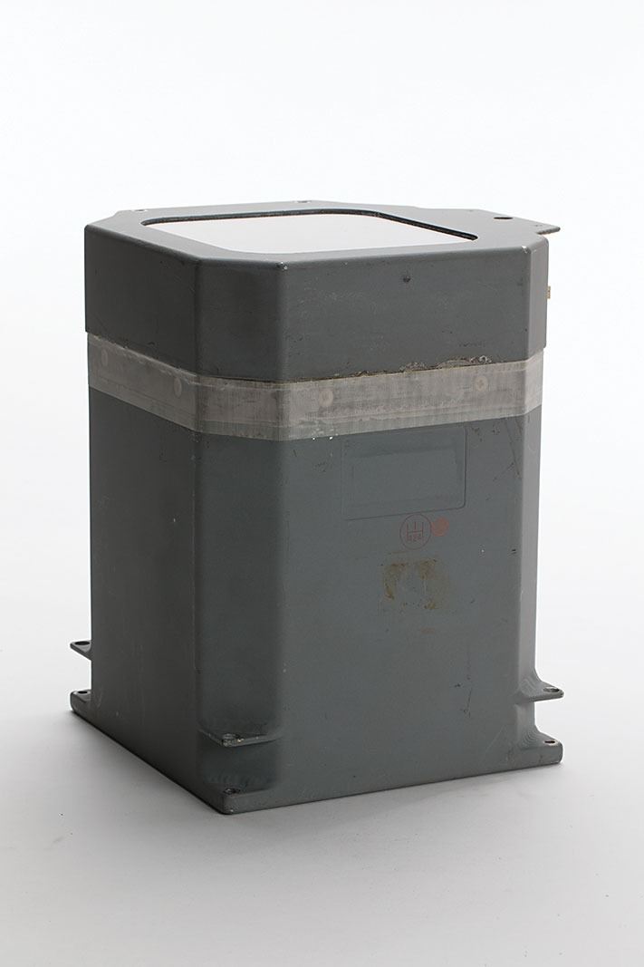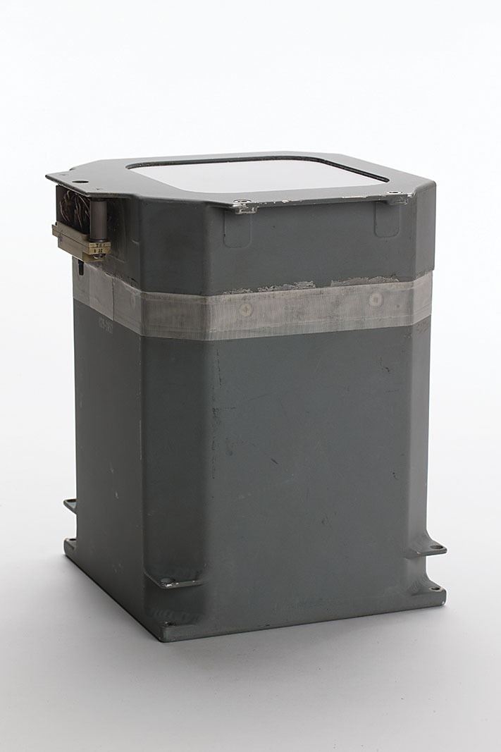 Scarce Apollo Block I Command Module Flight Director Attitude Indicator (FDAI), contained in its original 8? x 8? x 9.75? housing. The original Honeywell tag is absent, but the unit bears two light red inspector's stamps on the side. Stenciled below the electrical port in white, "C29-2A52." In fine condition. Manufactured by Honeywell, this square version was the first type of this piece of equipment.