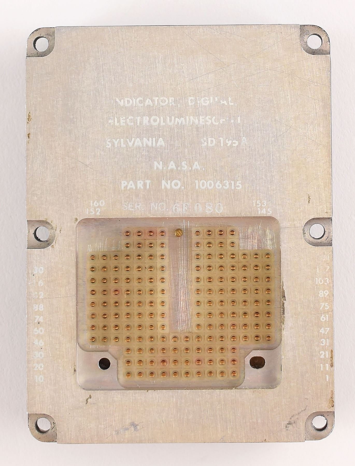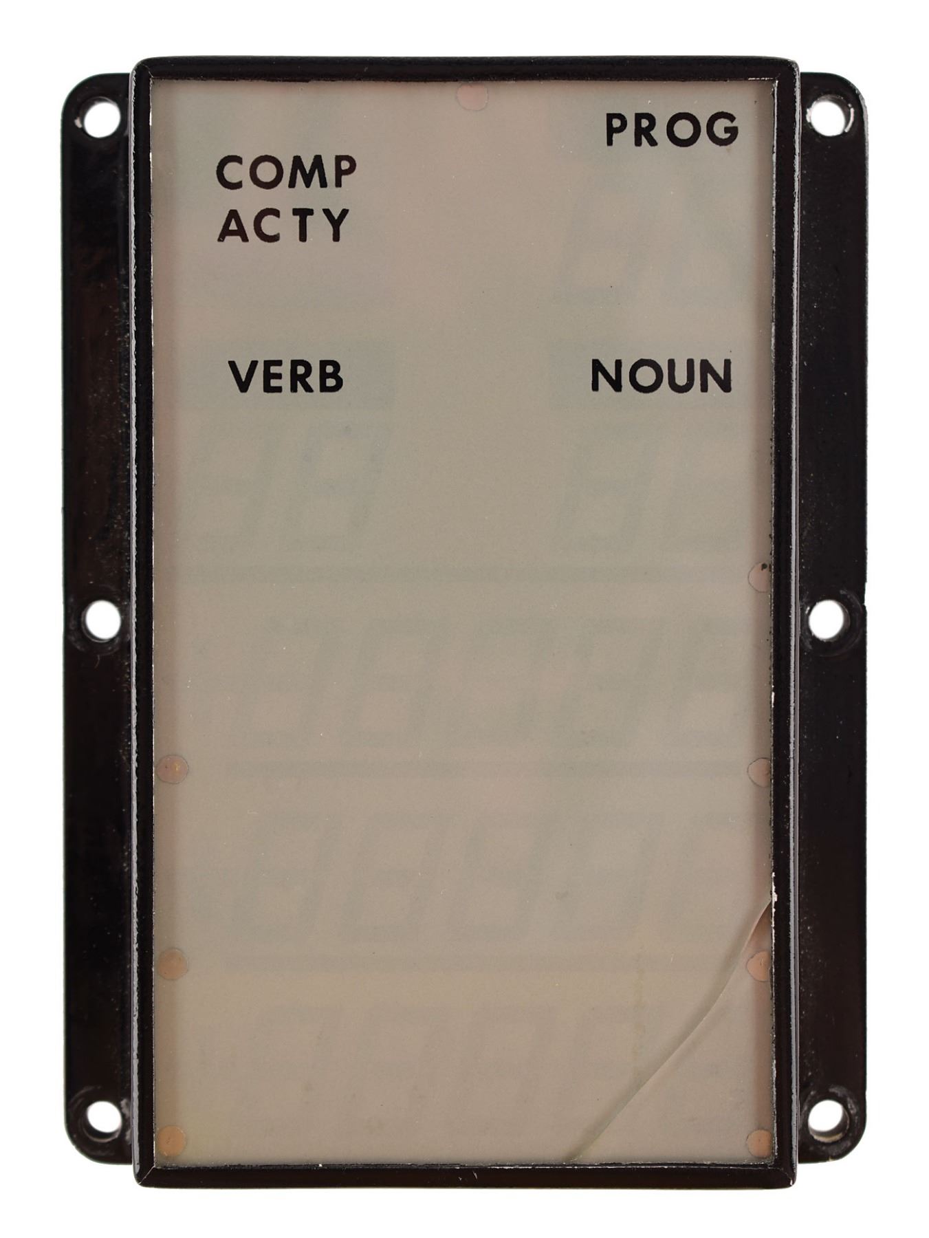 The DSKY was the main interface between an astronaut and the Apollo Guidance Computer (AGC), which controlled the Apollo spacecraft. Each AGC program had a two-digit code displayed on the screen, and commands were entered via a numerical keypad as two-digit numbers in a verb-noun sequence. It was the DSKY that provided the astronauts with critical burn times for engine firings, course corrections, trajectories, and other key calculations vital in getting a crew to and from the moon. The DSKY also reported the program alarm moments before the LM touched down on the lunar surface on the first lunar landing. DSKY units are among the most recognizable and historically significant of all Apollo spacecraft parts—this screen, designed to provide mission-critical information at a moment's notice, is a superb piece of spaceflight history.