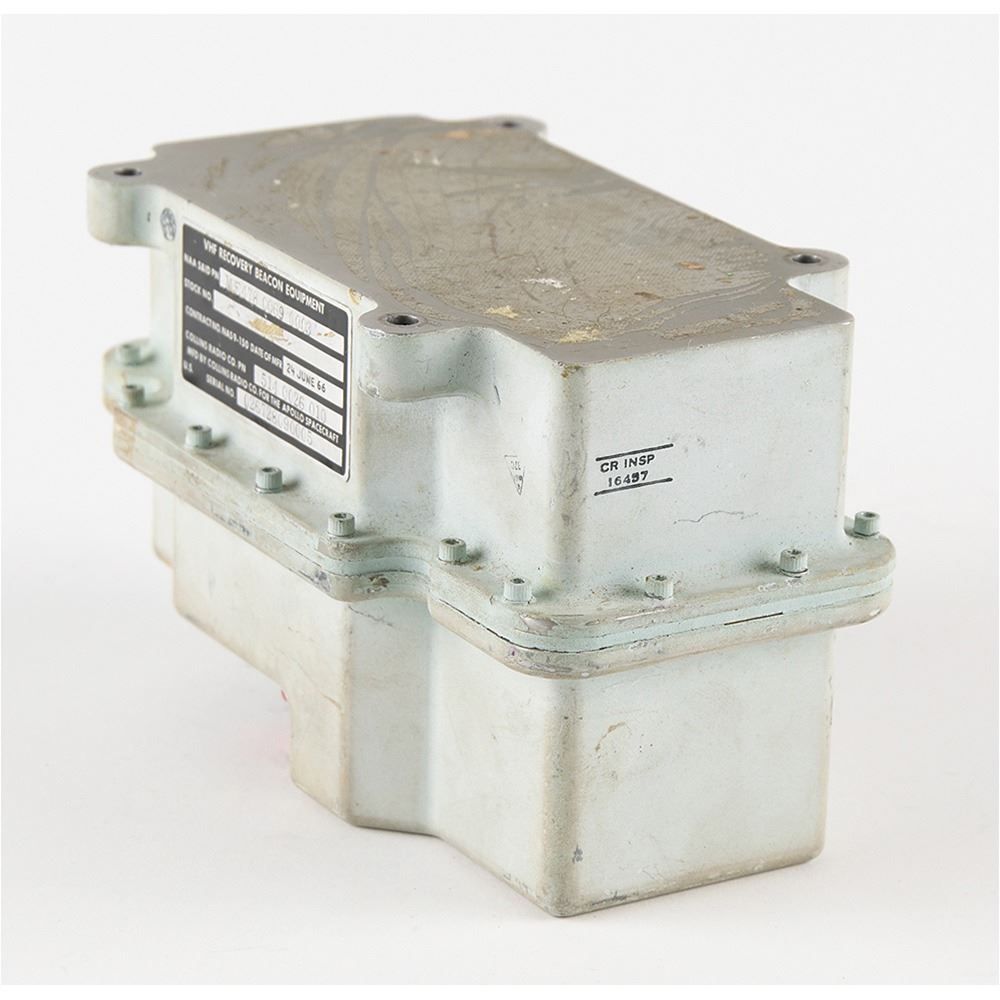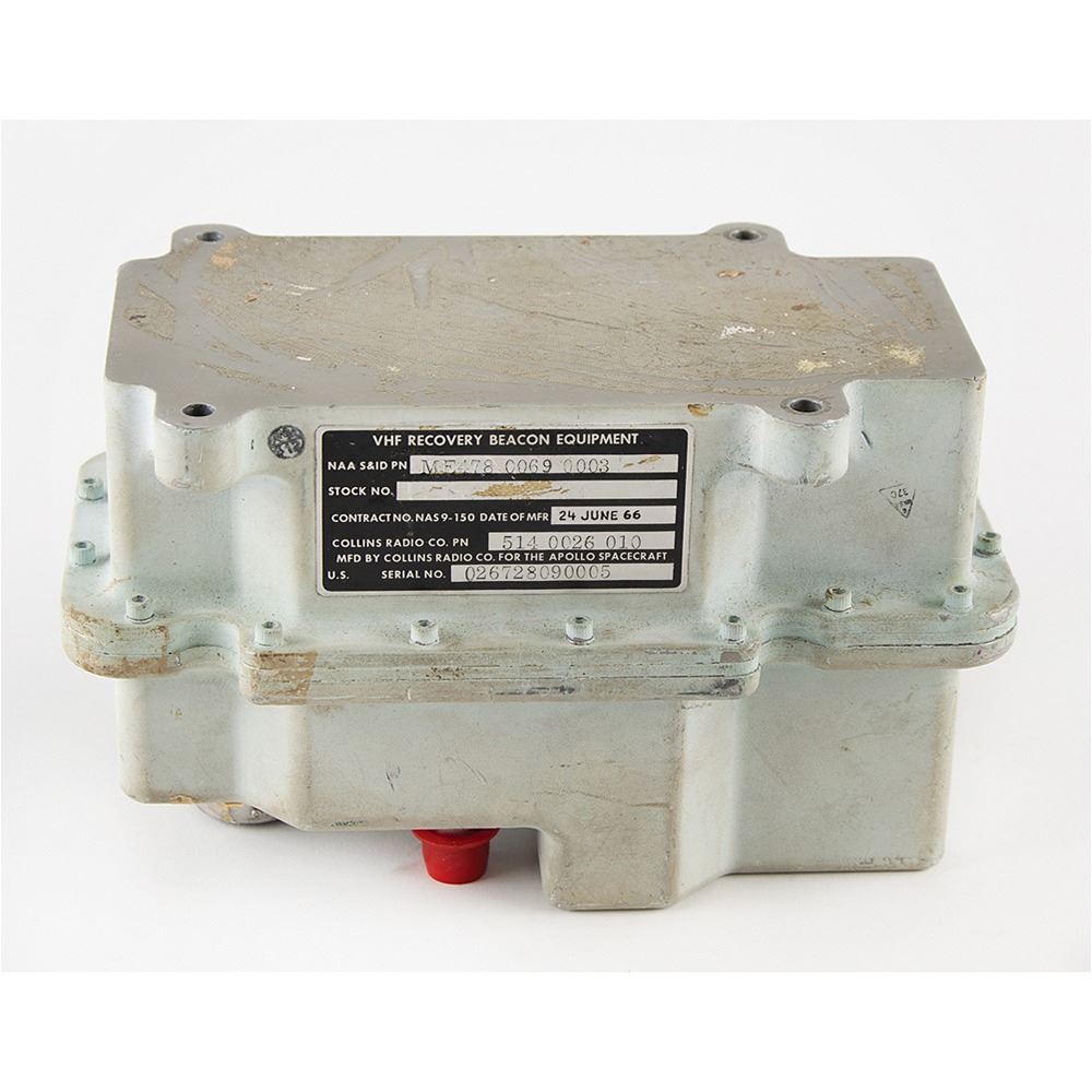 Apollo Command Module (Block II) Very High Frequency Recovery Beacon manufactured by Collins, measuring approximately 6.5Ë x 4Ë x 4Ë with a tag on the side reading: "VHF Recovery Beacon Equipment, NAA S&ID PN ME478-0069-0003…Contract No. NAS 9-150, Date of Mfr. 24 June 66…Mfd. by Collins Radio Co. for the Apollo Spacecraft, Serial No. 026728090005." The unit is labeled "C28-1A111†on the top, and features connectors “J1†and “J2.†In very good to fine condition. This desirable recovery beacon was designed to be used post-splashdown, to assist the recovery force with locating the Command Module if not visually sighted.