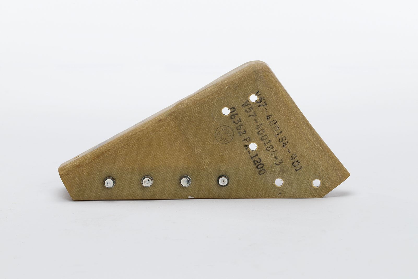 Late model Apollo Command Module electrical wiring cover used to protect cables routed throughout the spacecraft, measuring 4? x 7? x 1.5?, marked on the front with part numbers, "V57-400184-901, V57-400184-3, 06362 PAE1200." The side is marked, "V57-400184-11, 102NC73." In fine condition.