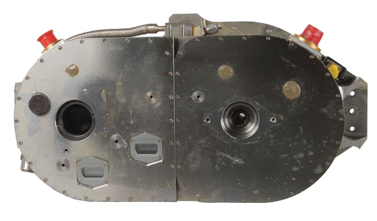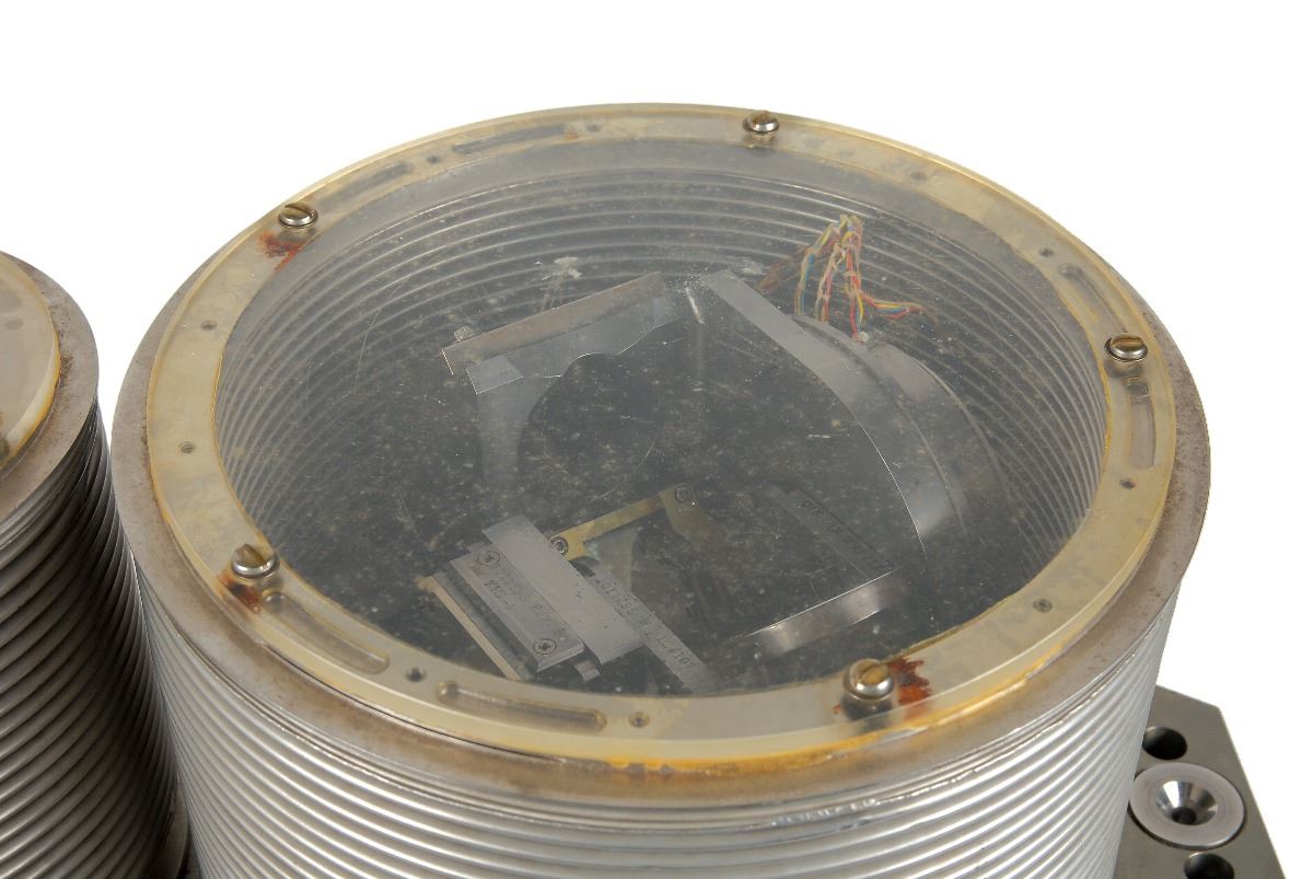 Following the mission, the sextant was returned to Kollsman for post-flight inspection and evaluation. Some conversion from Block I to Block II electronics was completed, and the connectors on the sextant are the Block II versions; the primary differences between the Block I and Block II sextants were internal and involved a different wiring harness and connectors. Kollsman eventually set the unit up for display in their lobby, putting the bellows seals over the optical tubes. Included are the flown ablative optics shield for the telescope optics side and a metal shroud for the sextant side, designed as part of the Block II update but not installed. The sextant was originally purchased from Kollsman by an employee when the company was relocating from Elmhurst, NY, to Merrimack, NH. It was then acquired by the consignor, who had the sextant’s beryllium mirror refinished by the original contractor, Speedring Systems.