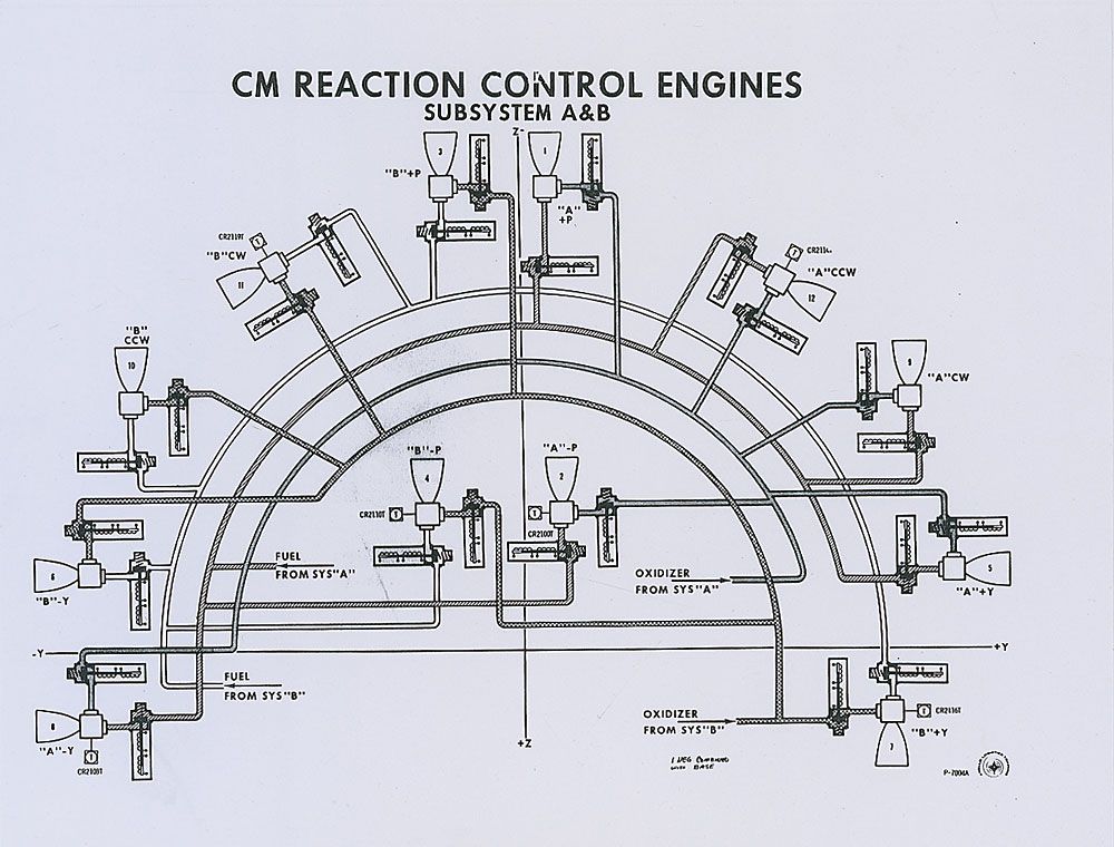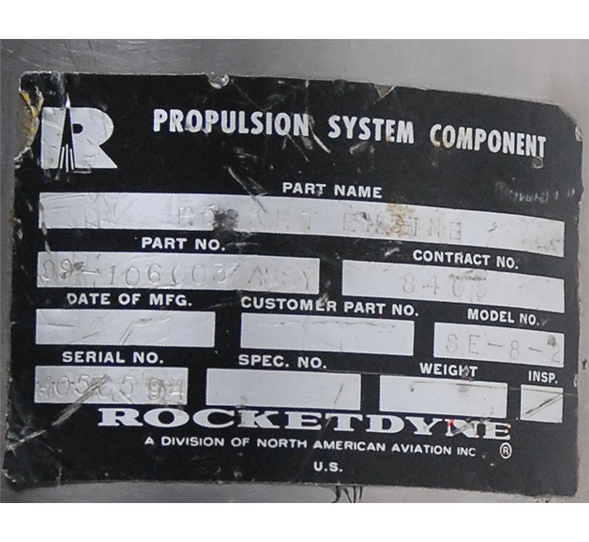 Utilizing the propellants Nitrogen Tetroxide (N2O4) Monomethylhydrazine (MMH) as fuel. the SE-8s were integrated on the Command Module in two systems of six engines and provided it with rotation control, rate damping, and attitude control after its separation from the Service Module and during reentry. As any flown examples were kept with their modules, the item offered here is as close to flown as you will find.