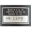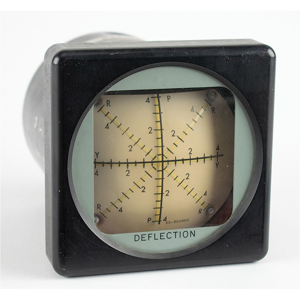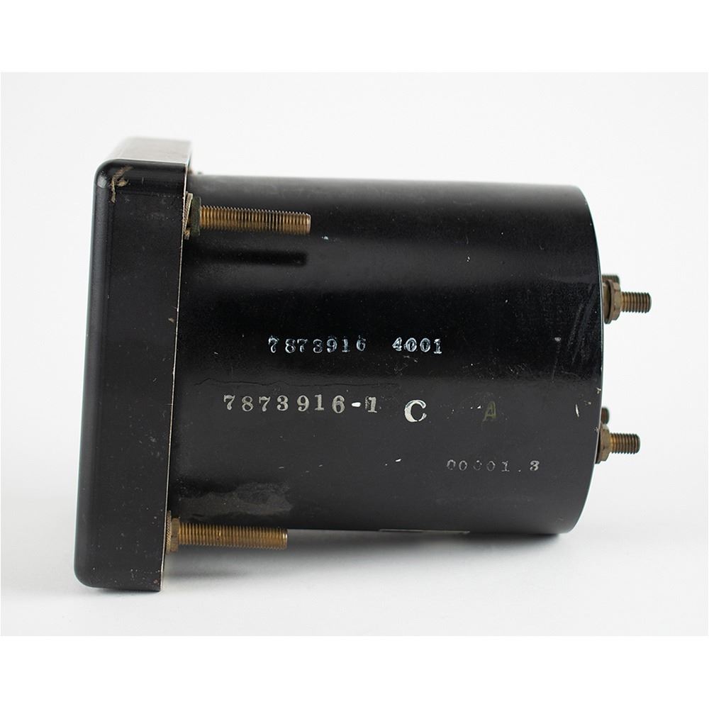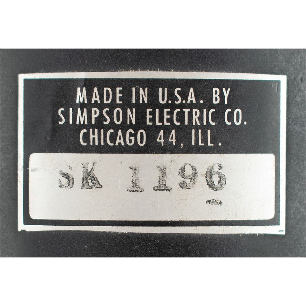 Apollo-era Engine Deflection Gauge, measuring approximately 4.5è x 4.5è x 5.5è, bearing a Simspon Electric manufacturing label on the housing, serial numbered: "SK 1196." Gauges like this one would be used in the Firing Room for measuring the deflection of the rocket stages during launch, measuring pitch, yaw, and attitude.