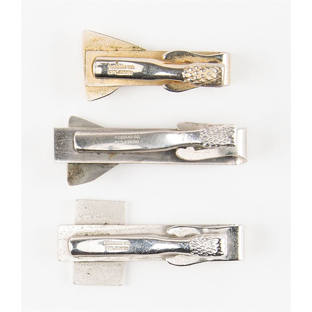 Early Apollo-era group lot of three tie clips and a tie tack made by the Robbins Company, including two silver-tone clips‰ÛÓone with a command module capsule and the other with a Poseidon rocket‰ÛÓand one gold-tone clip with a command module capsule, the latter of which is accompanied by its matching command module capsule tie tack (bar is missing from chain). The tie clips each approximately measure 1.5è in length, and each is engraved on the back with ‰ÛÏRobbins, Co., Attleboro.‰Û The tie tack measures 1è in length. In overall fine condition, with some light scuffing and marks.