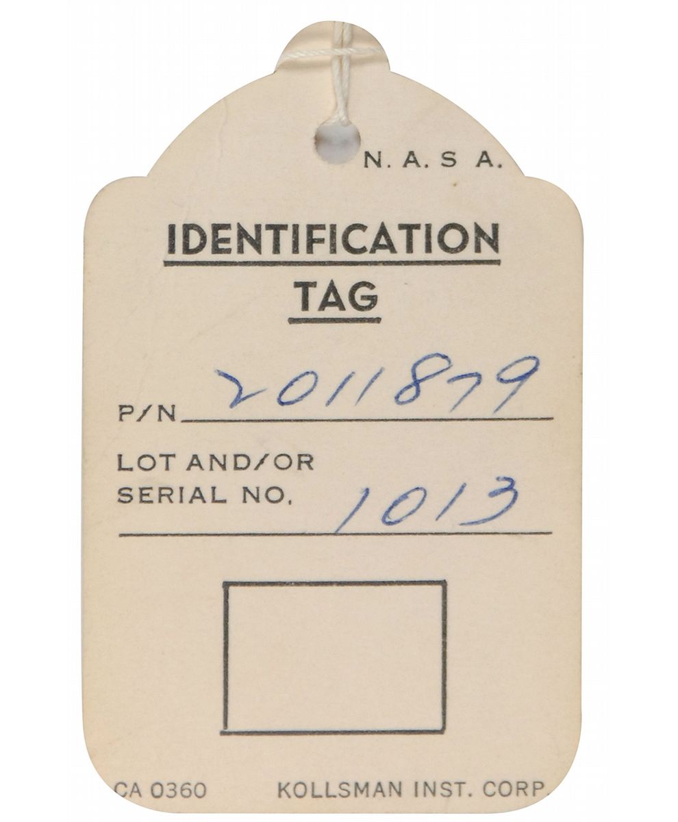 Rubber eyepiece 2´ in length with a 1´ diameter eye hole. A NASA identification tag is attached to the piece and reads, “P/N 2011879, Lot and/or Serial No. 1013.” In fine condition.