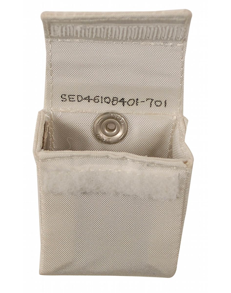 Small Beta cloth flight pouch, 2.25 x 2.75 x 1, labeled on the top of the cover in red ink “III,” S/N SED4-6108401-701, with a Velcro strip to keep cover closed and two snaps on the reverse. In fine condition.