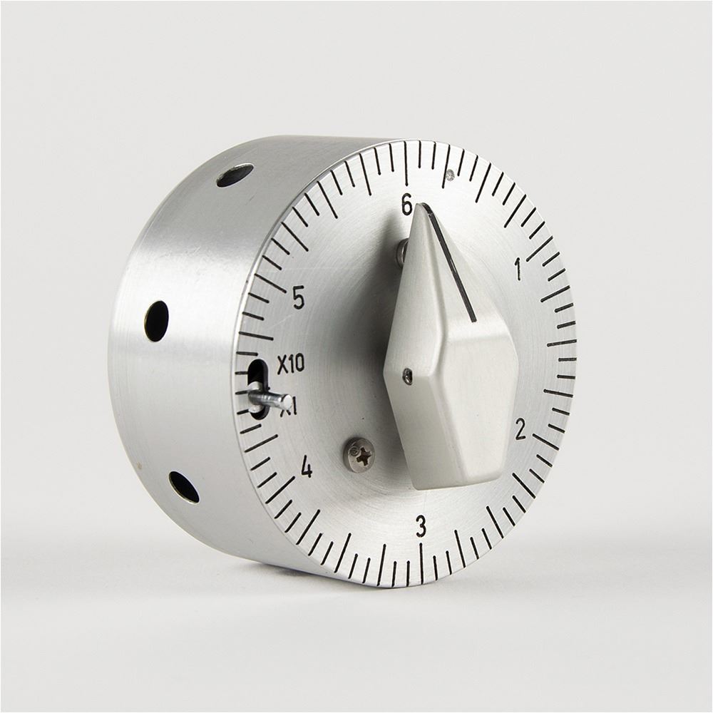The Apollo Interval Timer works like a standard kitchen timer, sounding a bell when the selected interval is over. As per Apollo stowage lists, it was provisioned onboard the Command Module & Lunar Module to time short interval events. Timer features two selectable modes of operation (6 and 60 minutes) determined by positioning of a switch on the timer’s face: X1 for 6 minute or X10 for 60 minute timing intervals. To operate, the crew would select the mode and rotate the pointer to the desired time setting. An alarm bell chime is generated at the conclusion of the interval.