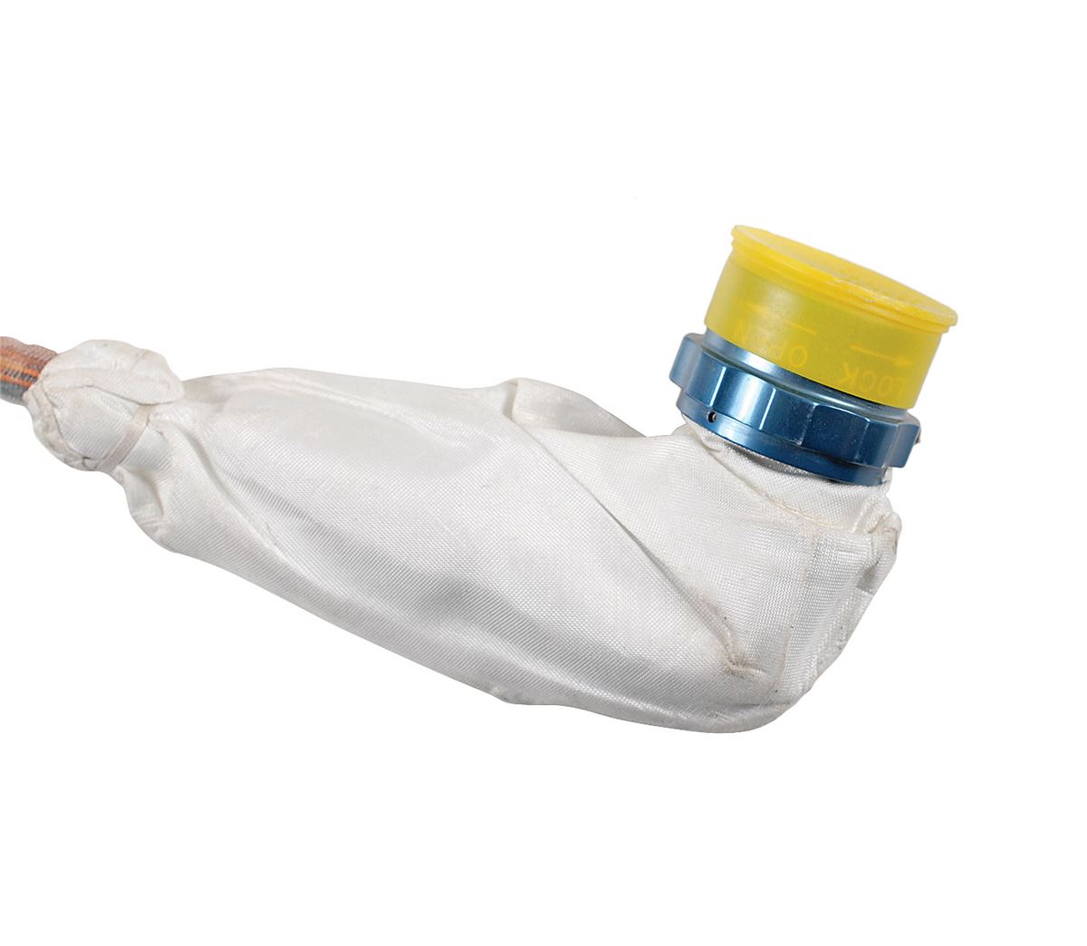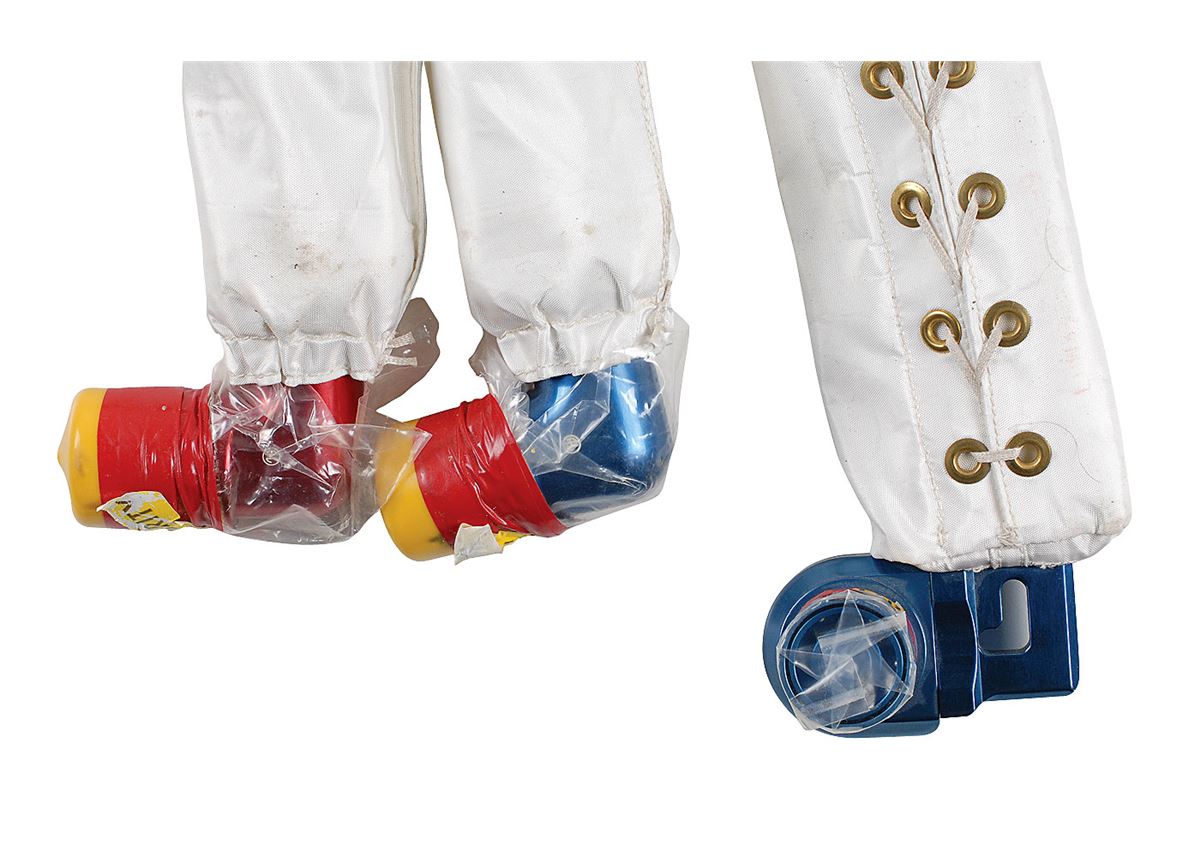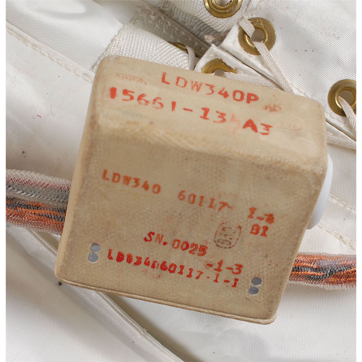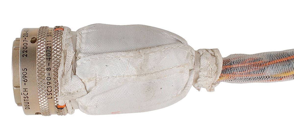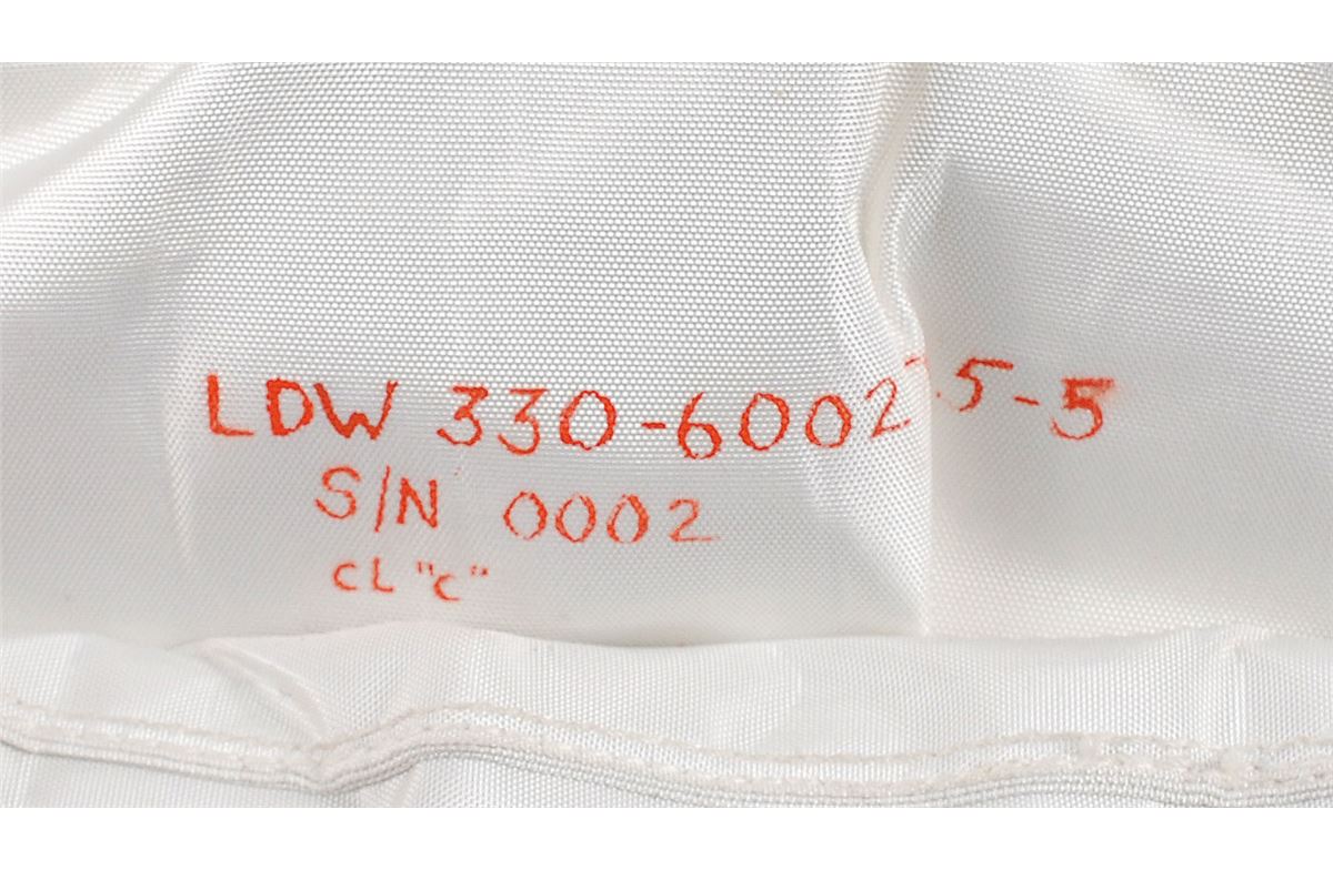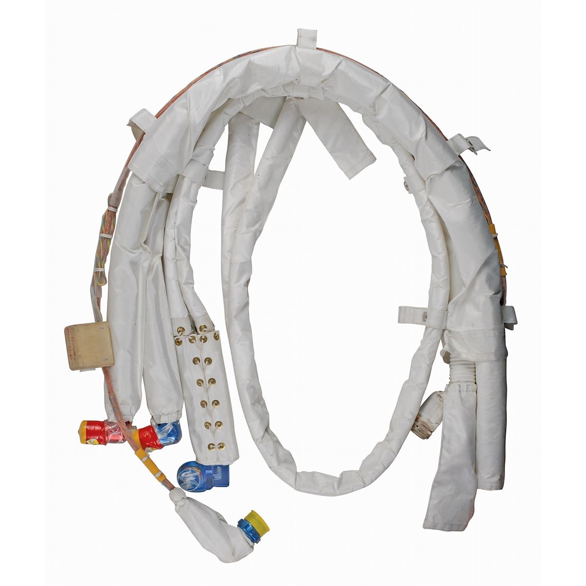 Beta cloth–covered umbilical assembly, measuring approximately 100? long, with stenciled part numbers on the side: “LDW 330-60027-5-5, S/N 0002, CL ‘C.’” Assembly consists of hoses and connectors for securing the Astronauts Pressure Garment Assembly to the Lunar Module's Environmental Control System, Communications Subsystem and Instrument Subsystem. Separate oxygen, electrical and water umbilical are included as part of this assembly. In fine condition. An impressive and substantial piece of LM hardware. Oversized.